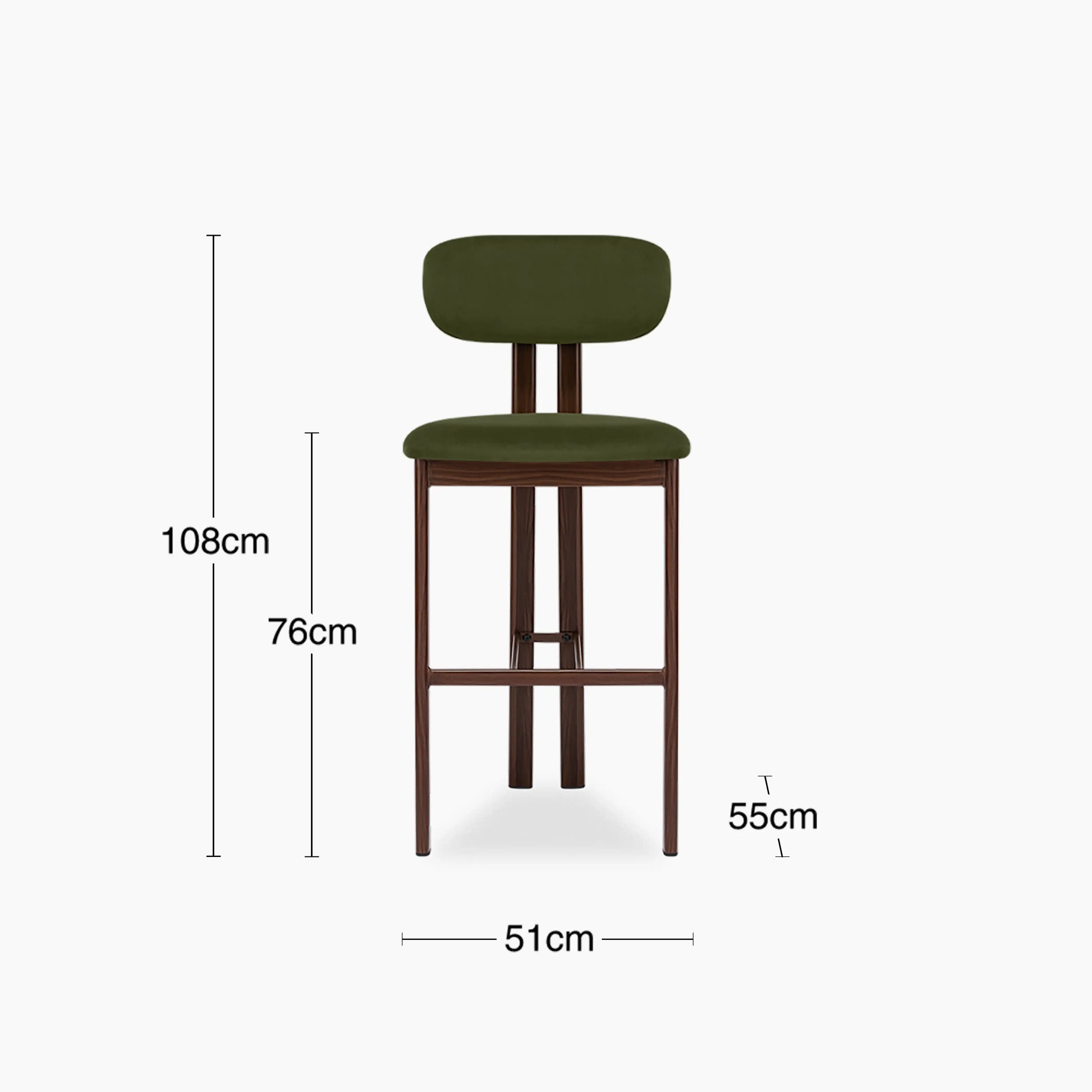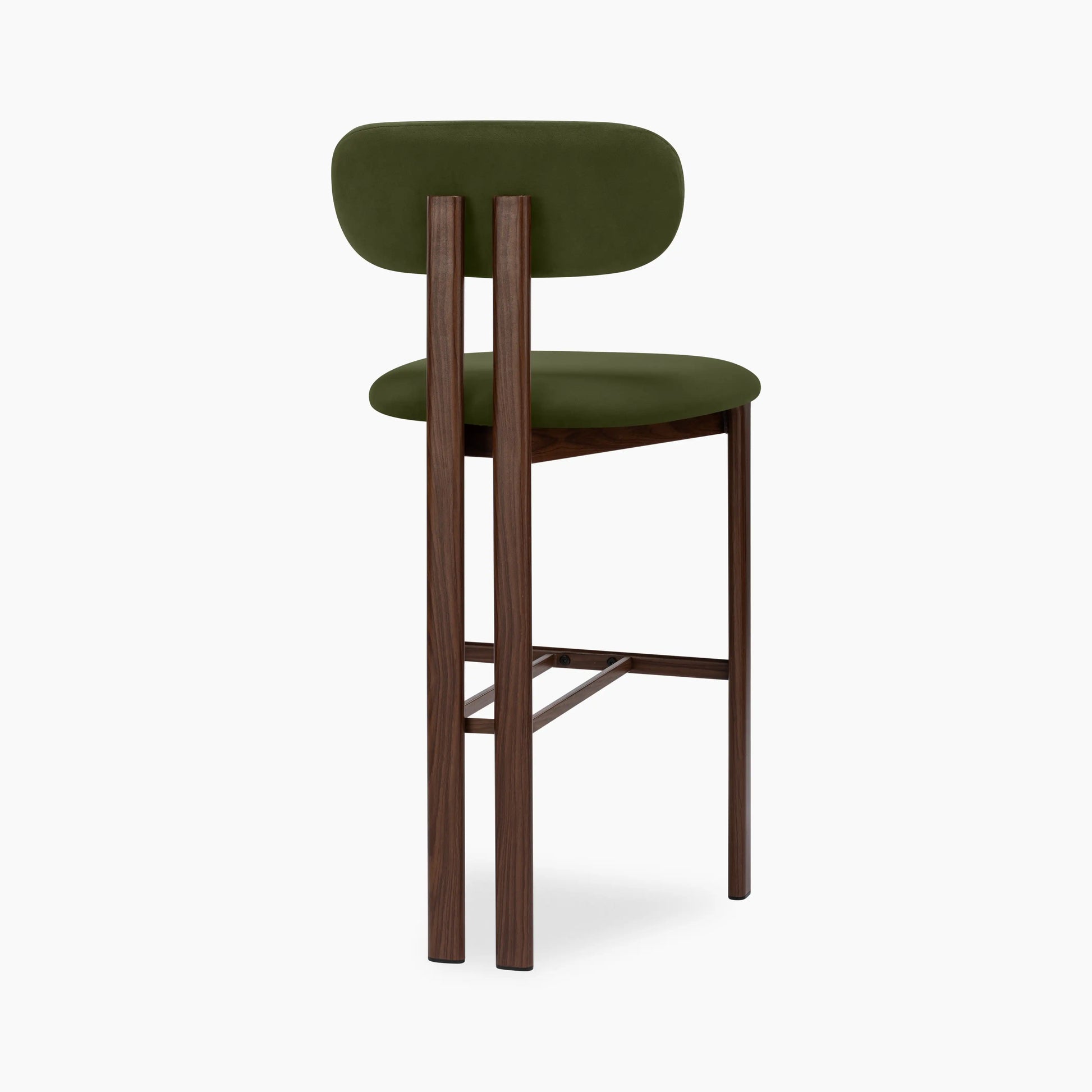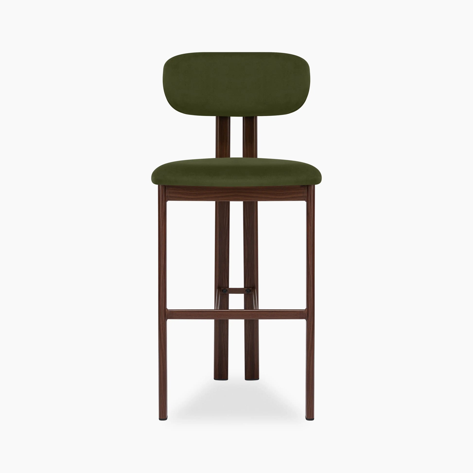 Arbor Bar Stool | Olive Green Sustainable Velvet & Walnut