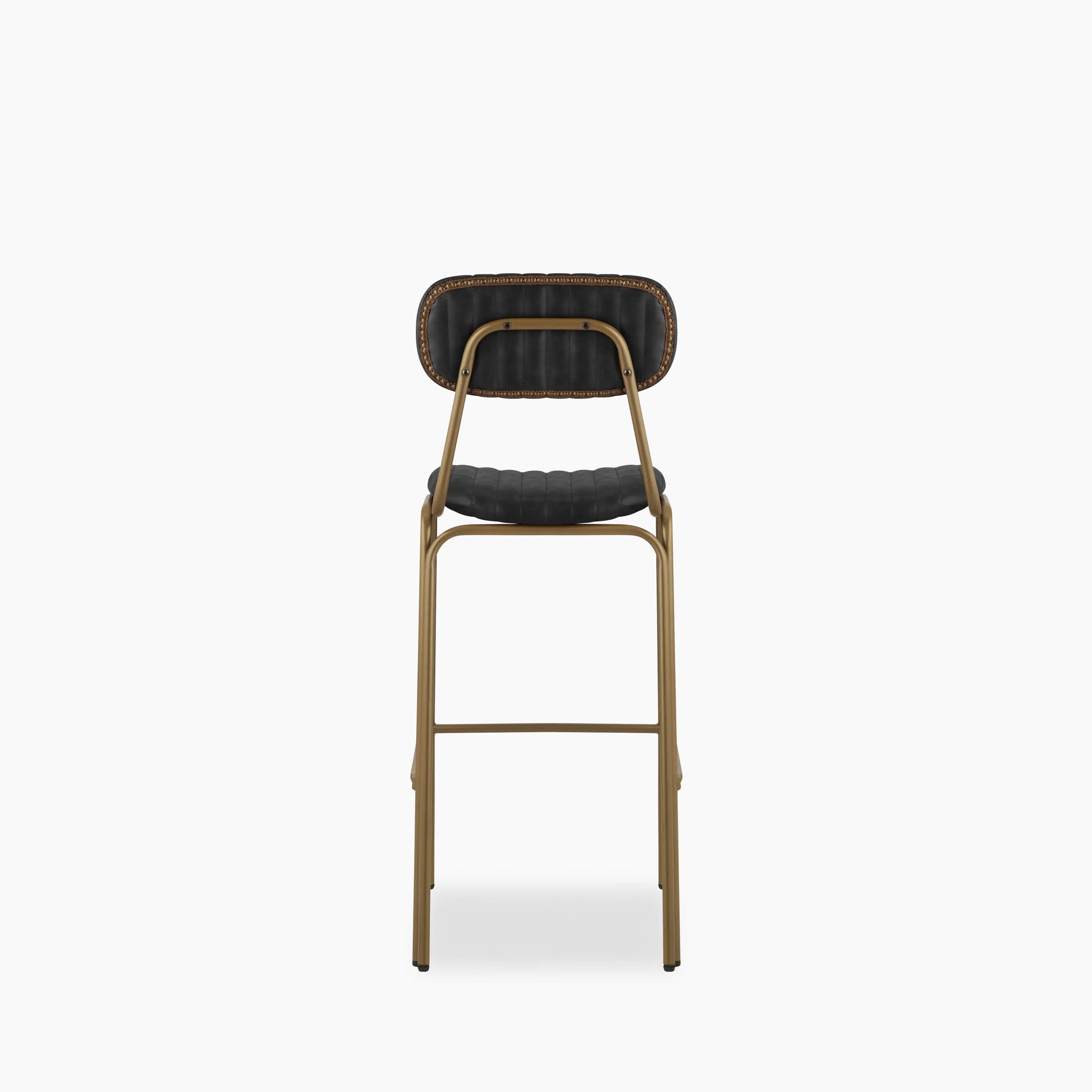 Boston Bar Stool With Backrest | Vintage Black Faux Leather & Brass