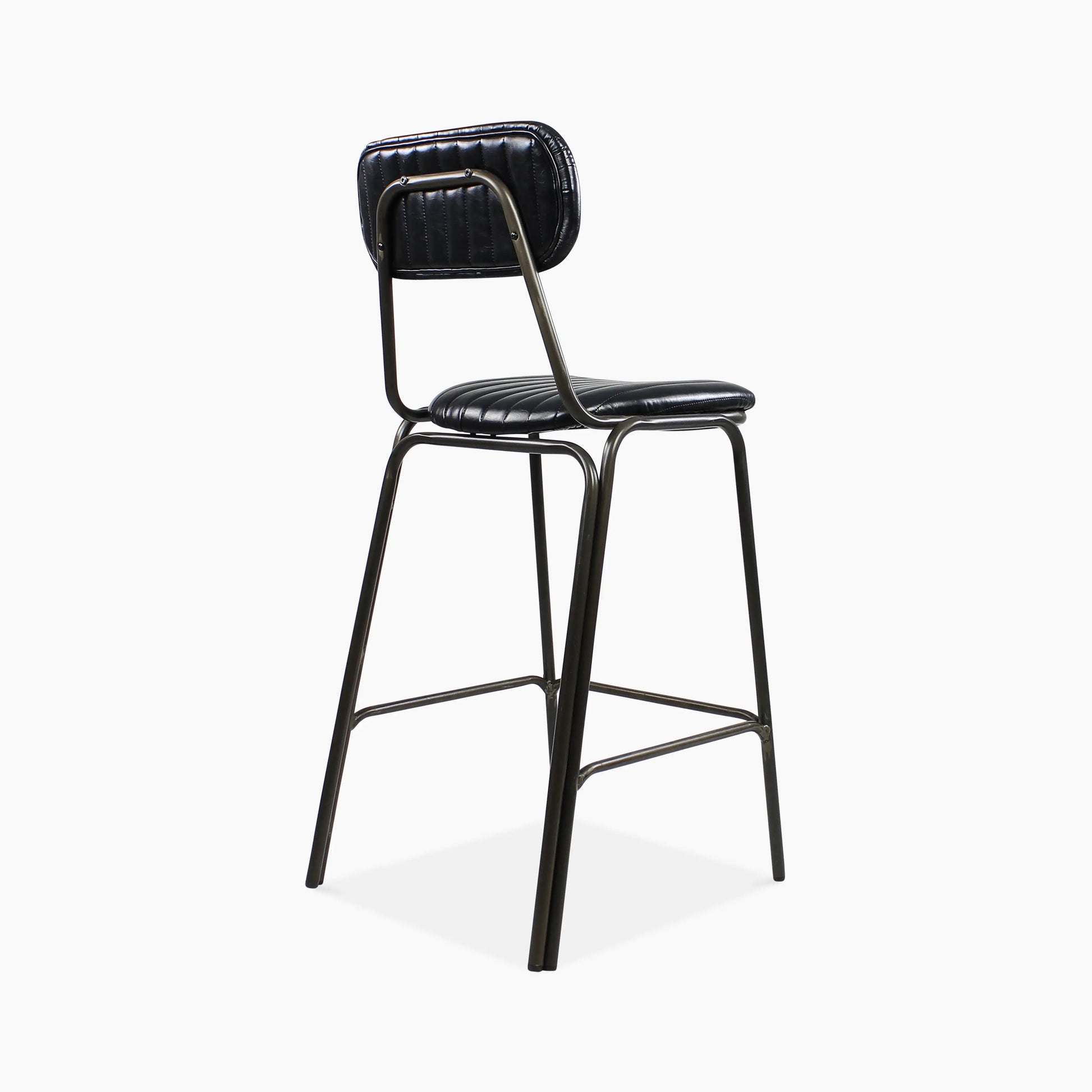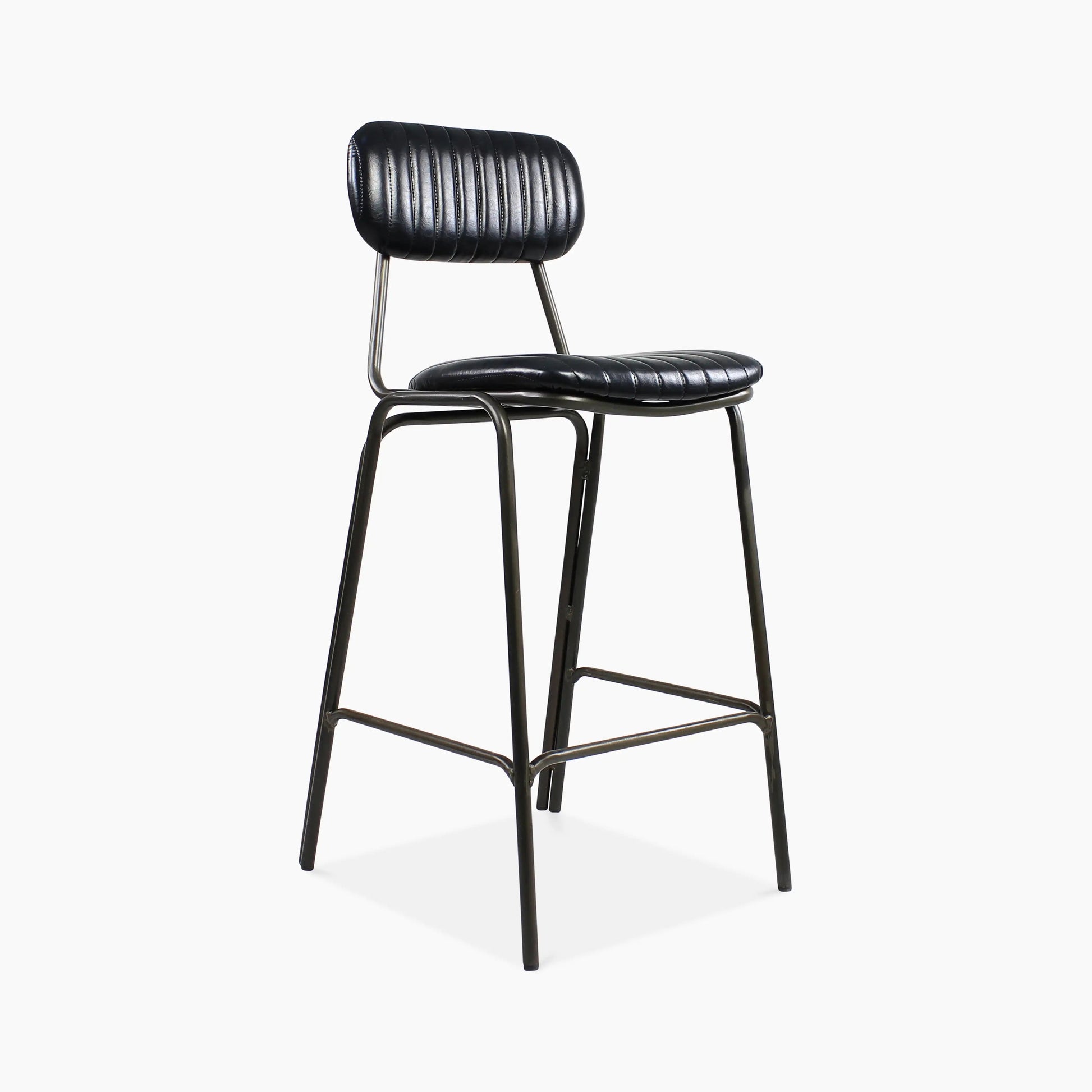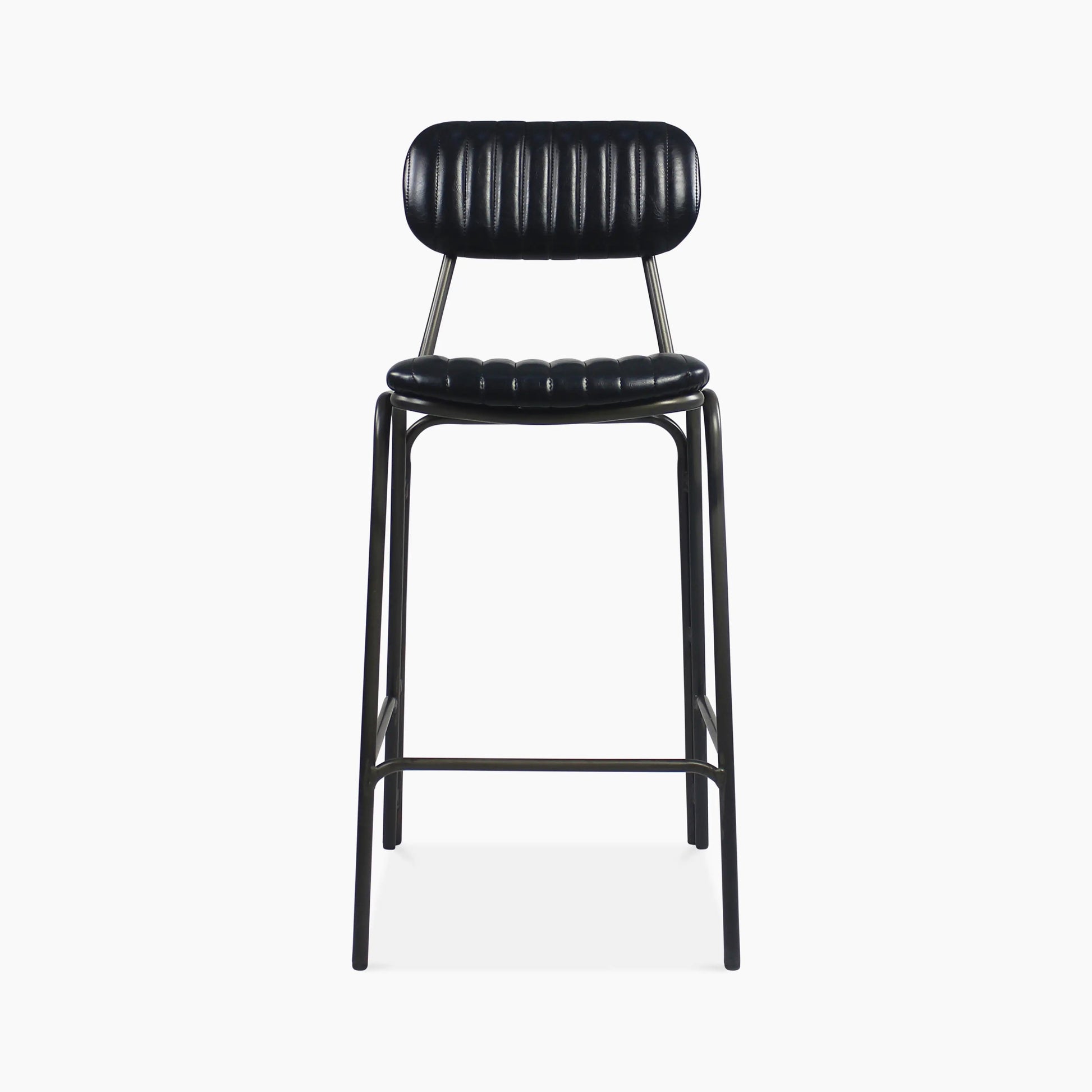 Introducing the Boston Bar Stool; a fresh take on a classic industrial design, this black faux leather upholstered bar stool features a padded seat with a backrest and a black metal frame with a built-in footrest. Upgrade your kitchen breakfast bar or counter area without compromising comfort.