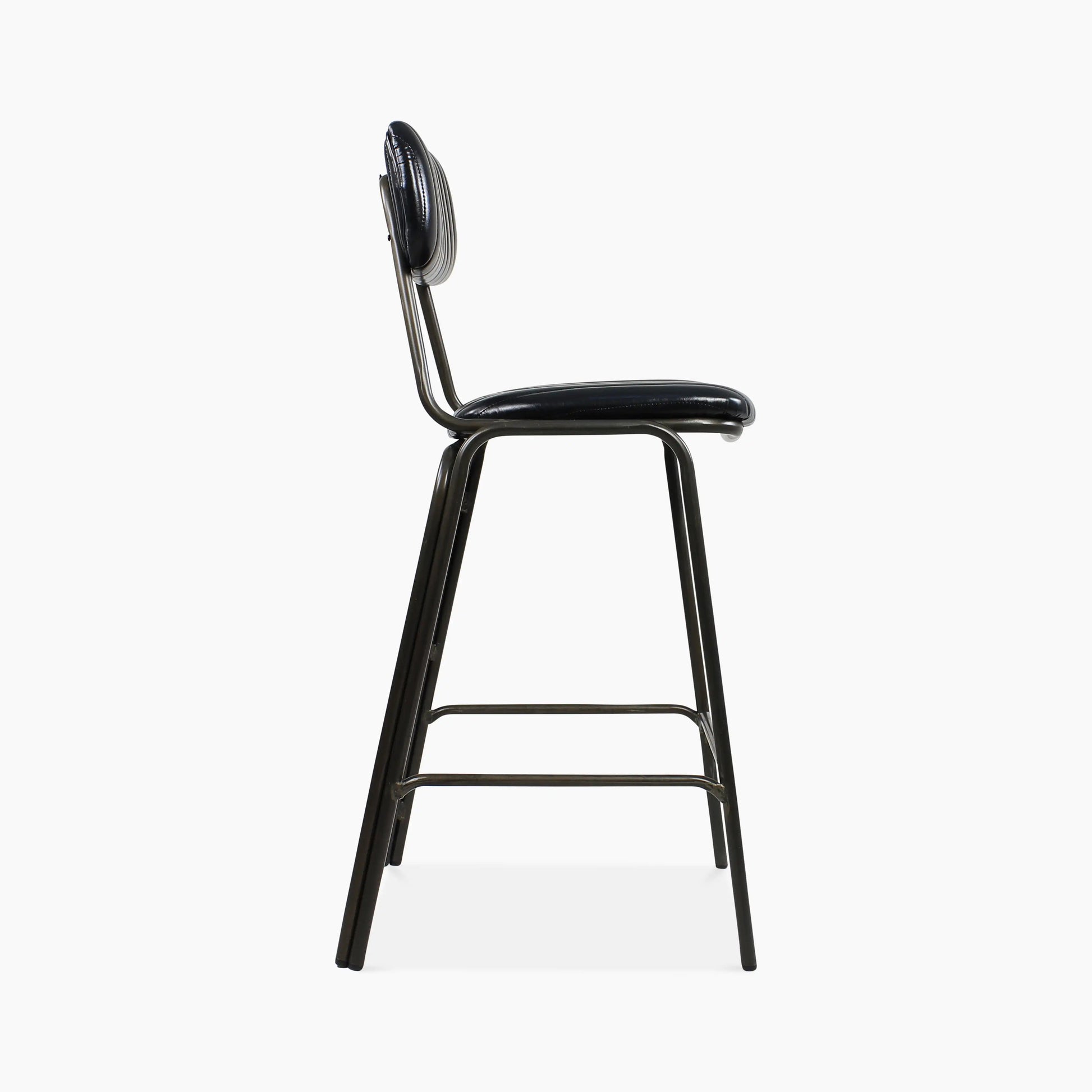 Boston Bar Stool With Backrest | Black Faux Leather & Gunmetal