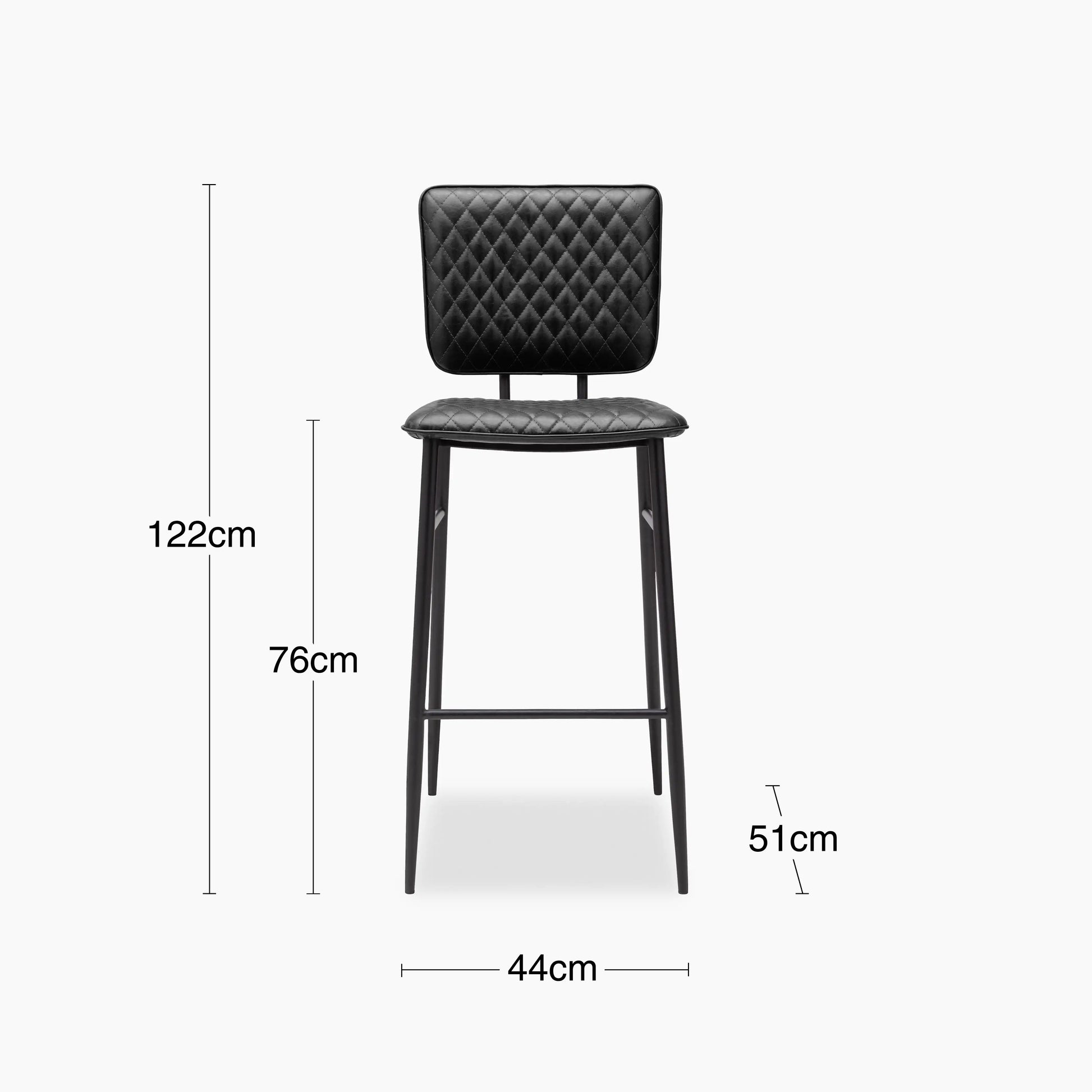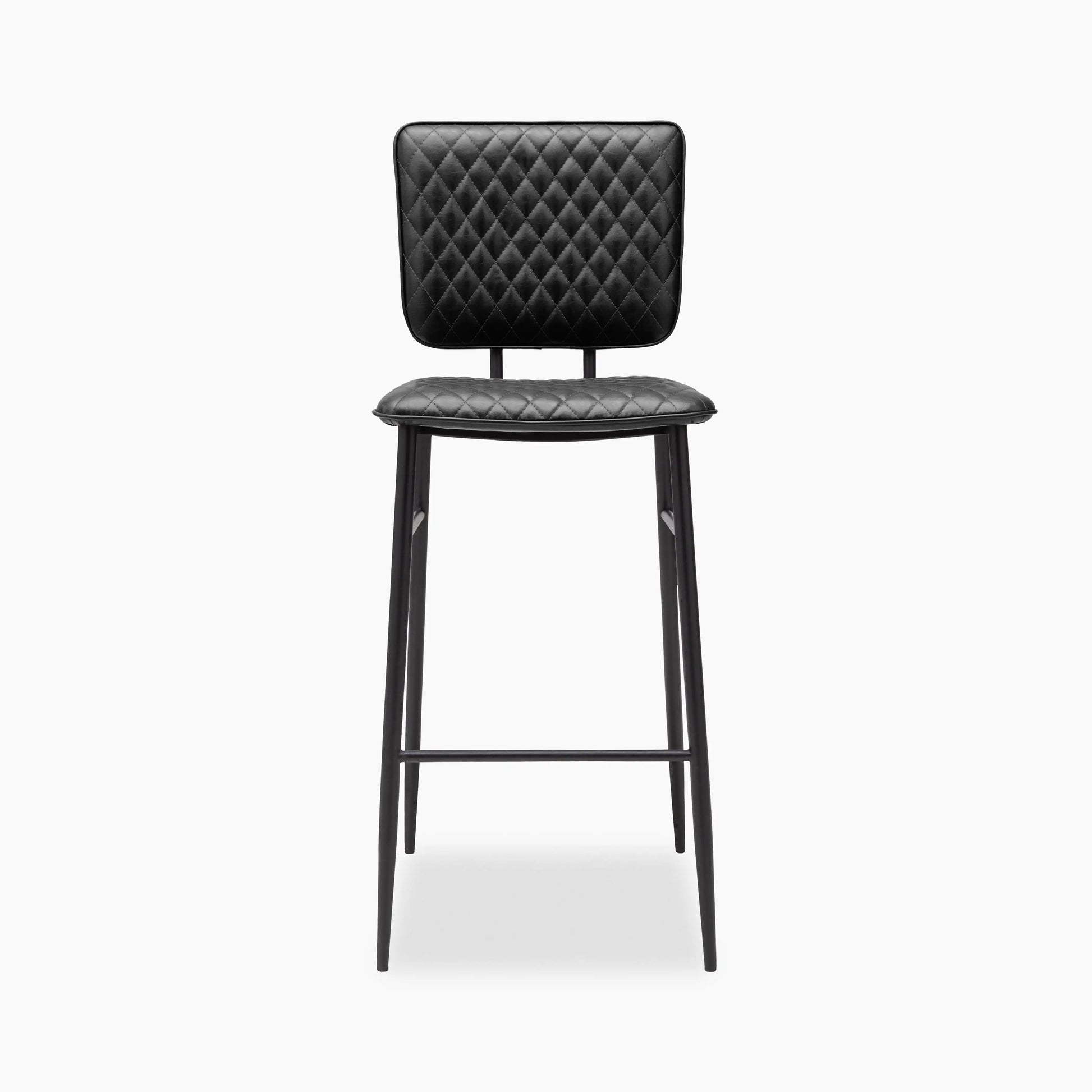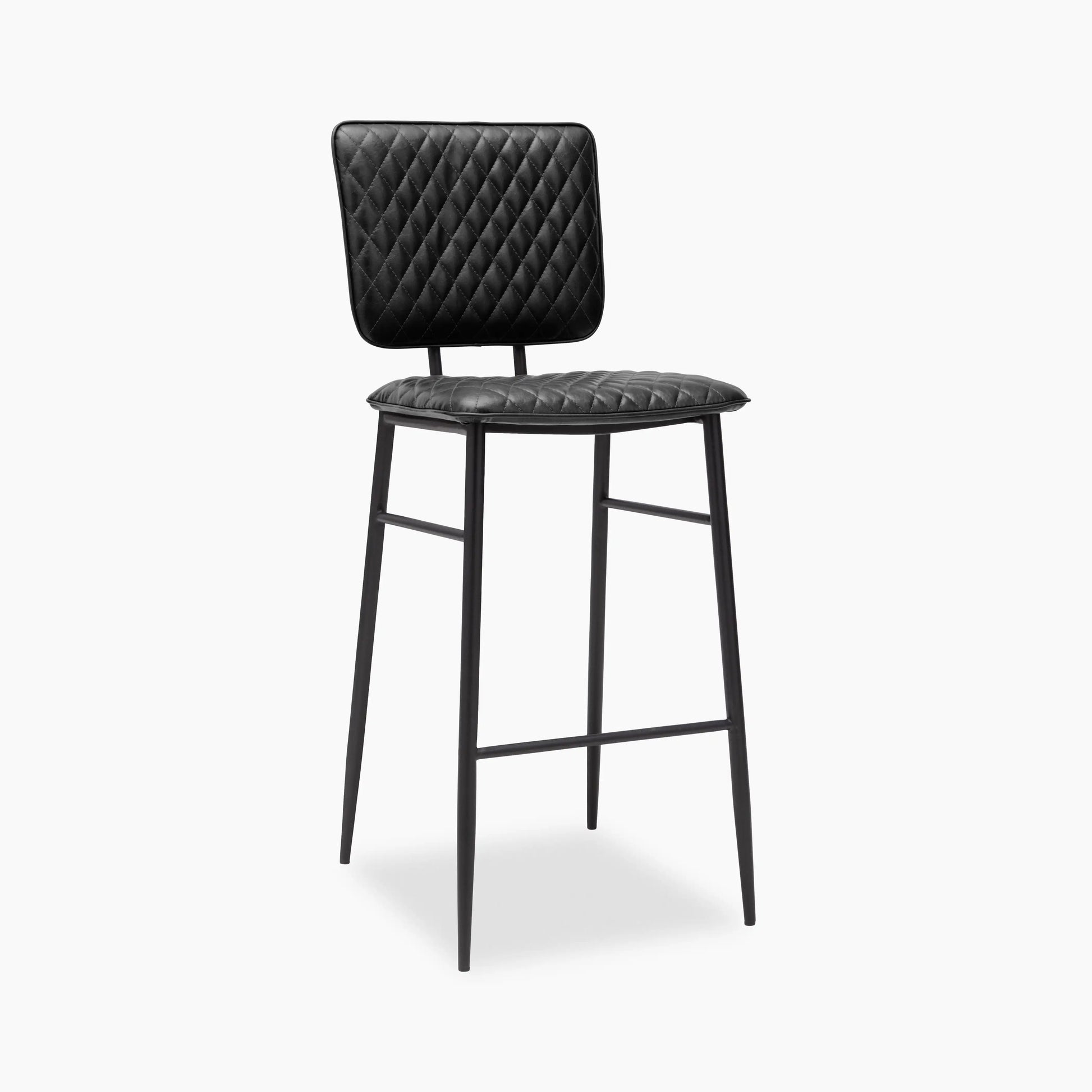 This is the Elgin - a bold, sophisticated metal bar stool that will add an industrial charm to your kitchen. Showcasing a quilted black faux leather upholstery and a sleek metal frame that emanates a retro vibe. Complete the look with a reclaimed wood dining table.
