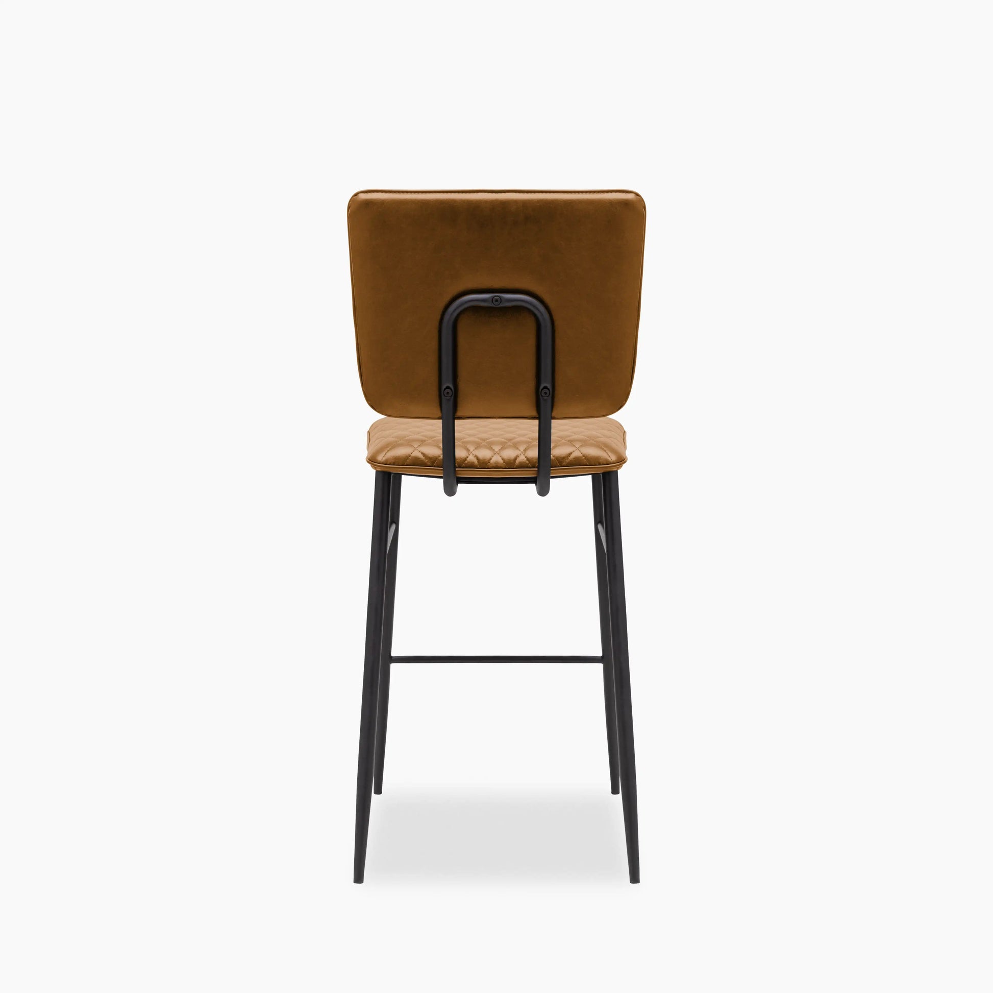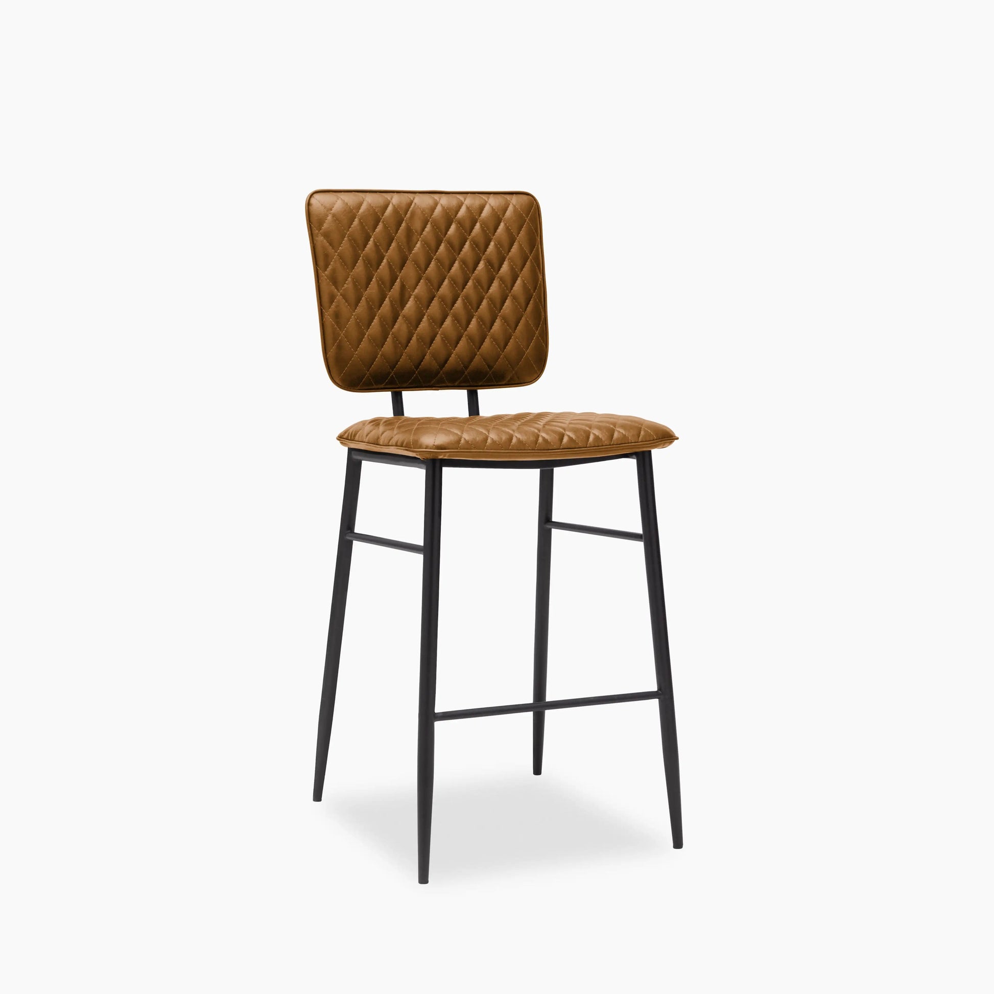 This is the Elgin - a bold, sophisticated metal kitchen stool that will add an industrial charm to your kitchen. Showcasing a quilted tan faux leather upholstery and a sleek metal frame that emanates a retro vibe. Complete the look with a reclaimed wood dining table.