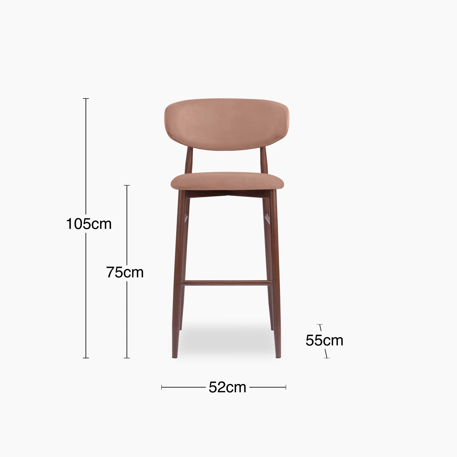 The harmonious blend of Nordic and Mid-Century in the Halston Bar Stool makes it an irresistible option for kitchen counters. The curved metal frame has a walnut effect finish and is cross-fixed, making the Halston durable and long-lasting for a high quality finish built to last. Crafted for comfort, the seat is upholstered in sustainably-sourced velvet, soft and textural to the touch, in blush pink.For a rich depth of colour and unique softness, our velvet used in this stool is not only of the highest quality but it is made from 100% recycled PET yarns so it is kinder to the environment too.