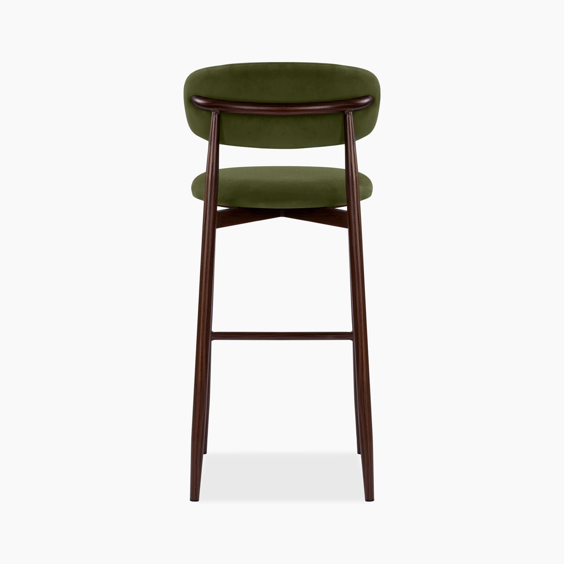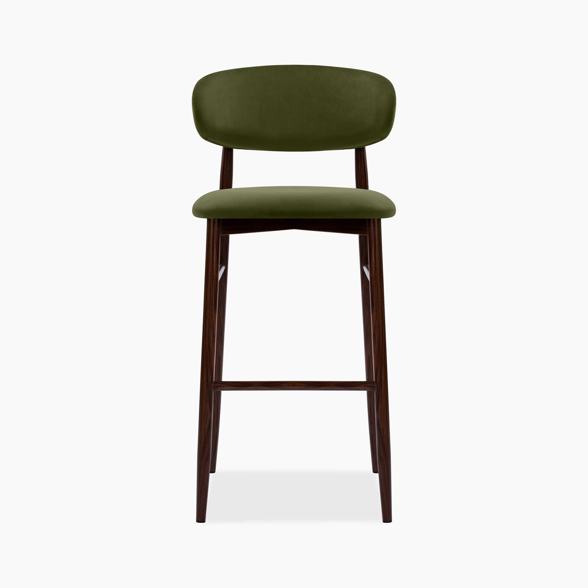 Halston Bar Stool | Olive Green Sustainable Velvet & Walnut