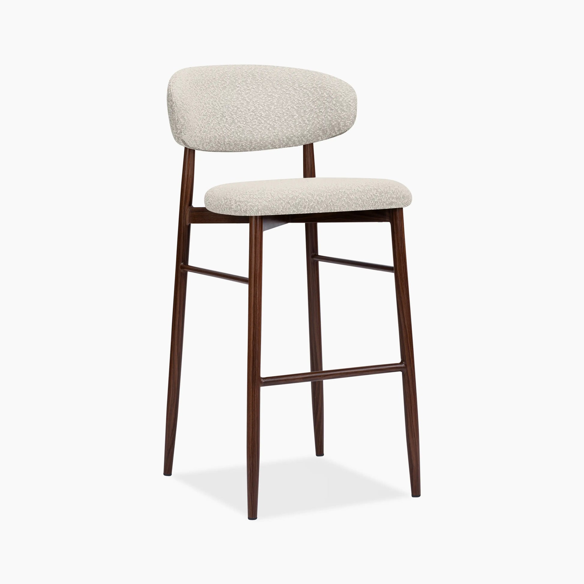 Halston Bar Stool | Speckled Stone Sustainable Boucle & Walnut