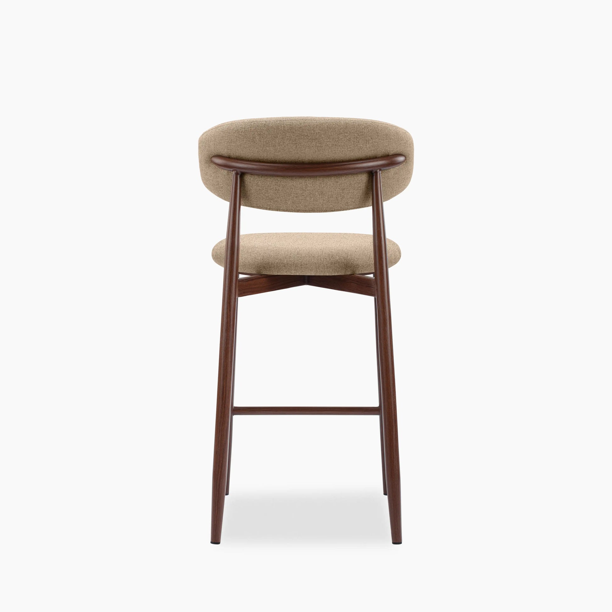The harmonious blend of Nordic and Mid-Century in the Halston Kitchen Stool makes it an irresistible option for kitchen counters. The curved metal frame has a walnut effect finish and is cross-fixed, making the Halston durable and long-lasting for a high quality finish built to last. Crafted for comfort, the seat is upholstered in sustainably-sourced fabric, soft and textural to the touch, in a light brown and cream hue.For a rich depth of colour and unique softness, our fabric used in this stool is not only of the highest quality but it is made from 100% recycled PET yarns so it is kinder to the environment too.