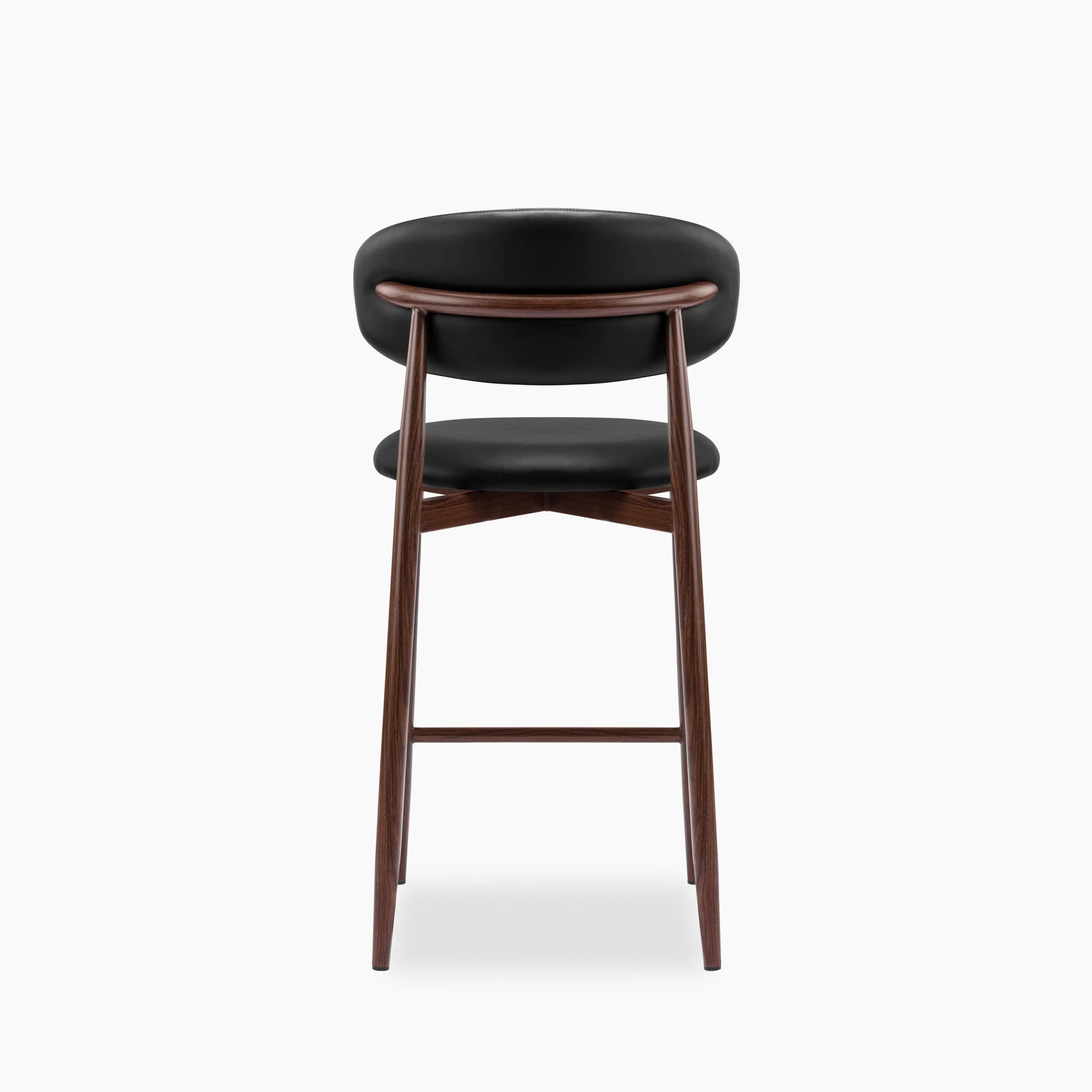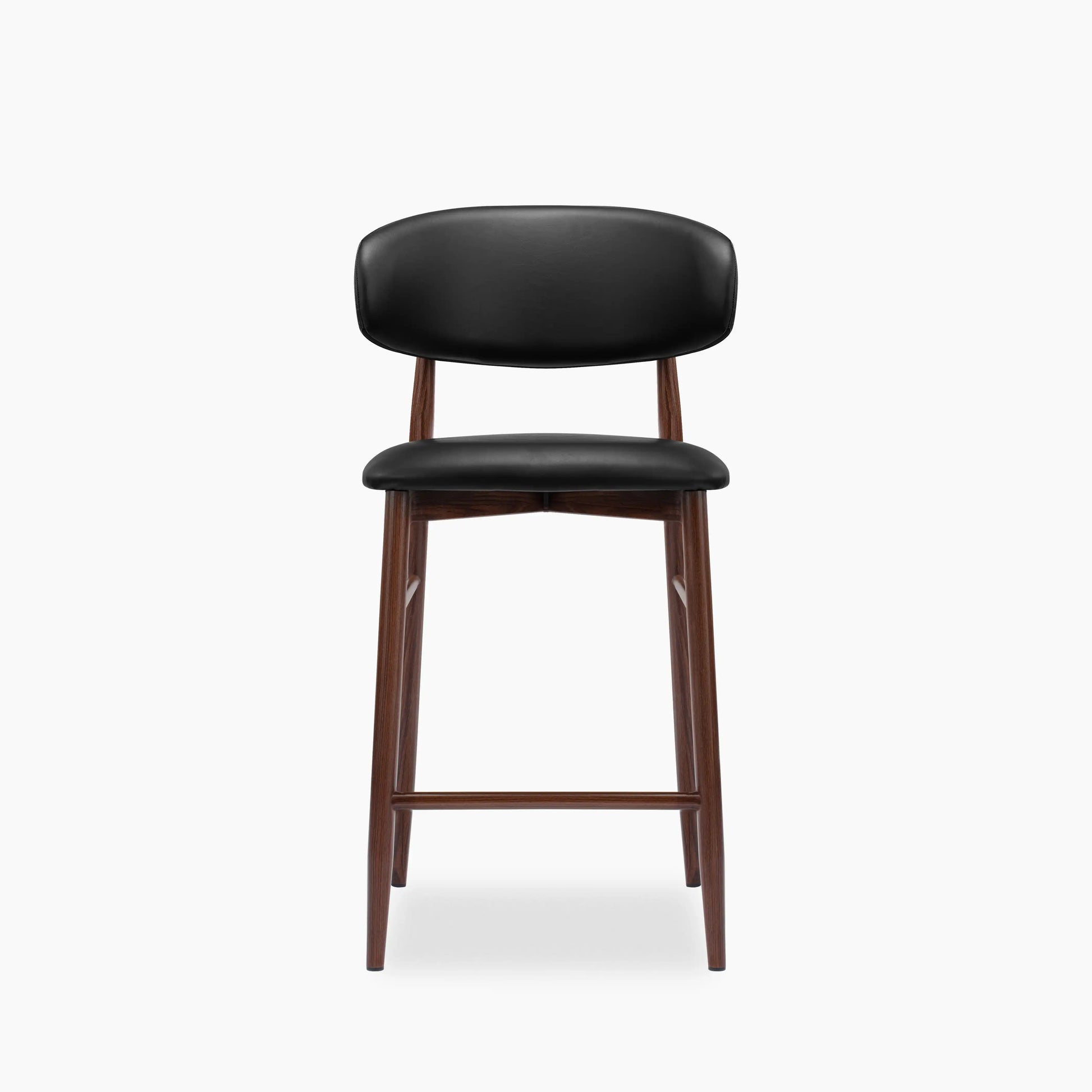 The harmonious blend of Nordic and Mid-Century in the Halston Kitchen Stool makes it an irresistible option for kitchen counters. The curved metal frame has a walnut effect finish and is cross-fixed, making the Halston durable and long-lasting for a high quality finish built to last. Crafted for comfort, the seat is upholstered in soft faux leather in vintage black.