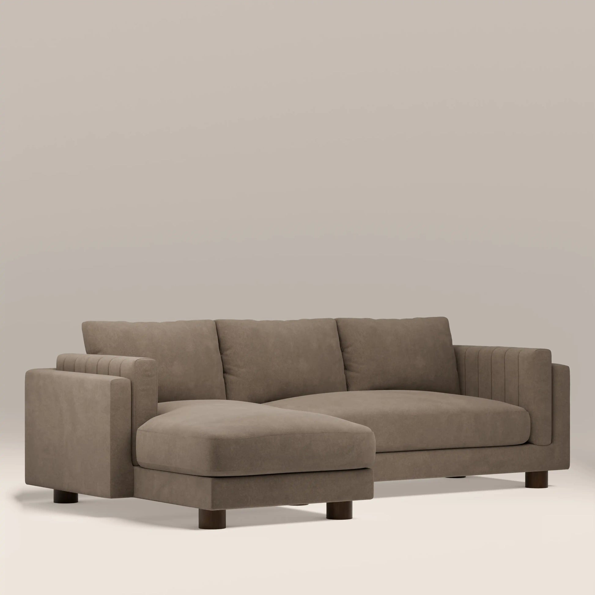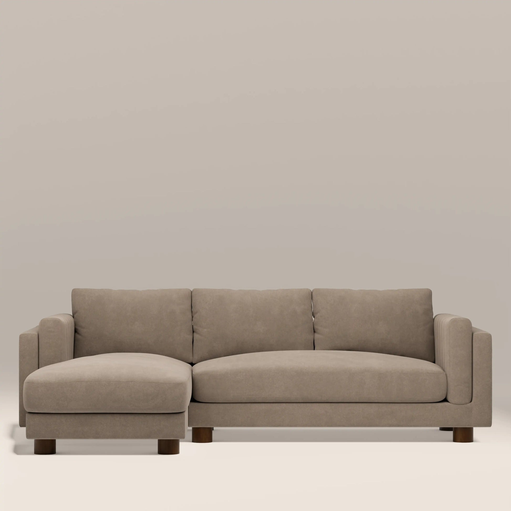 Halton Left Hand Chaise Sofa | Truffle Brown Sustainable Mohair Velvet