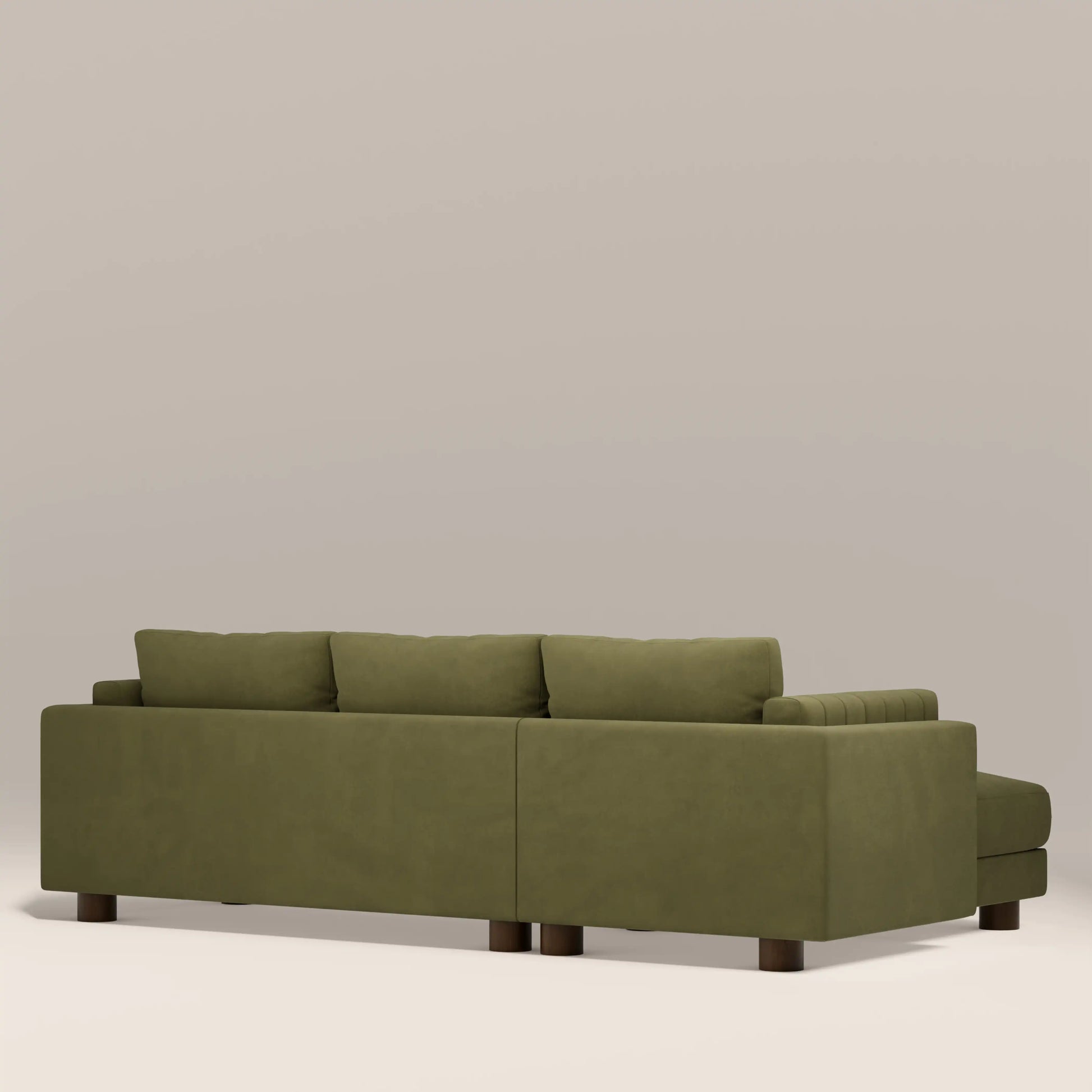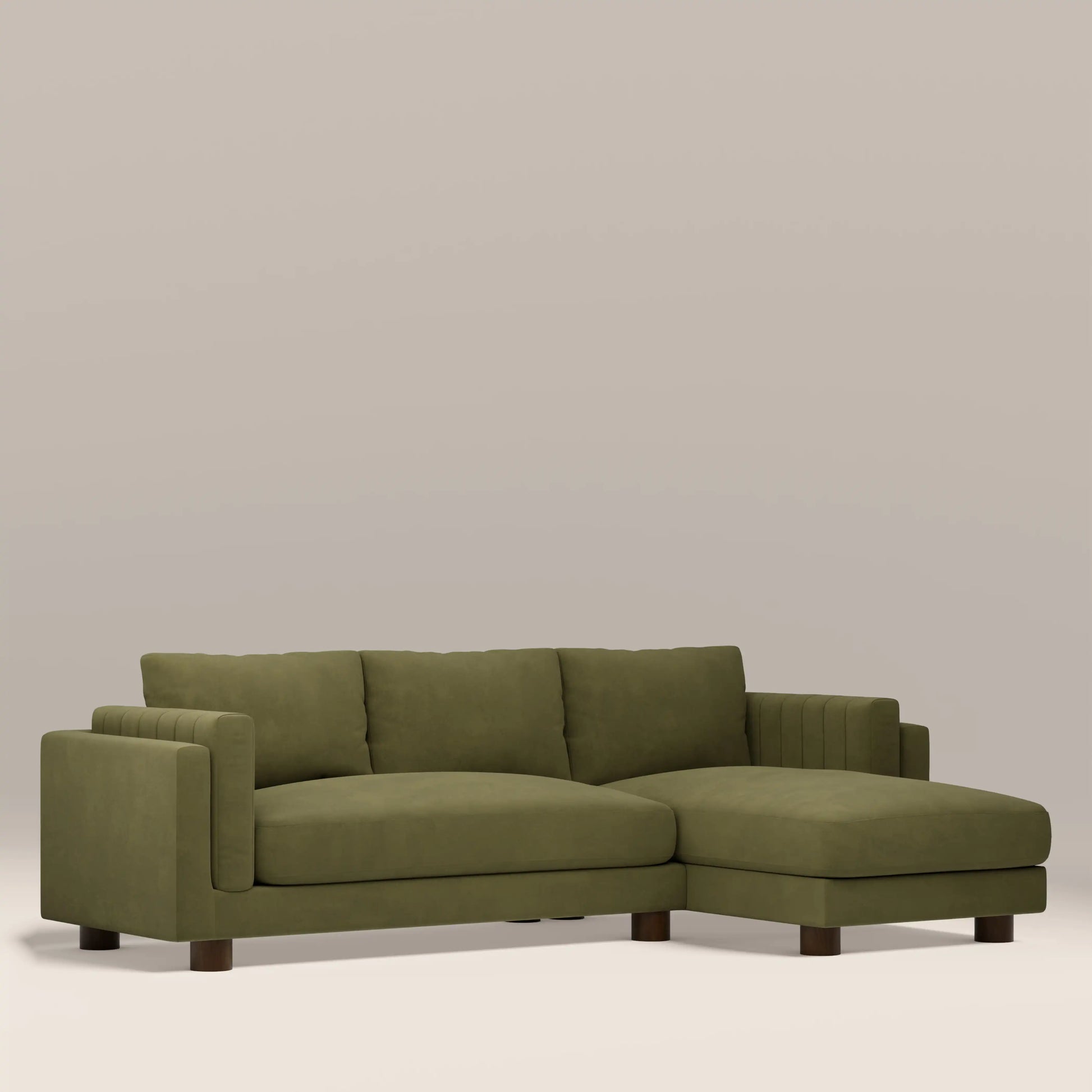 Halton Right Hand Chaise Sofa | Moss Green Sustainable Mohair Velvet