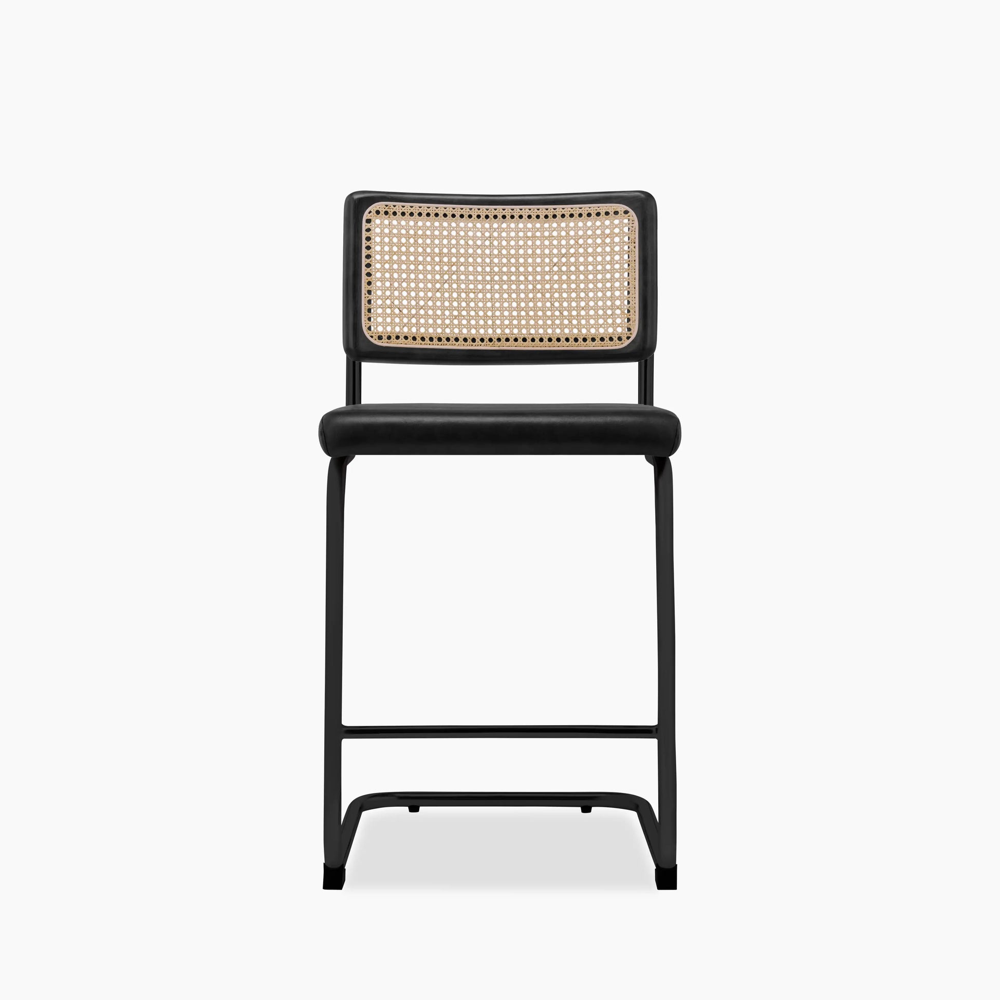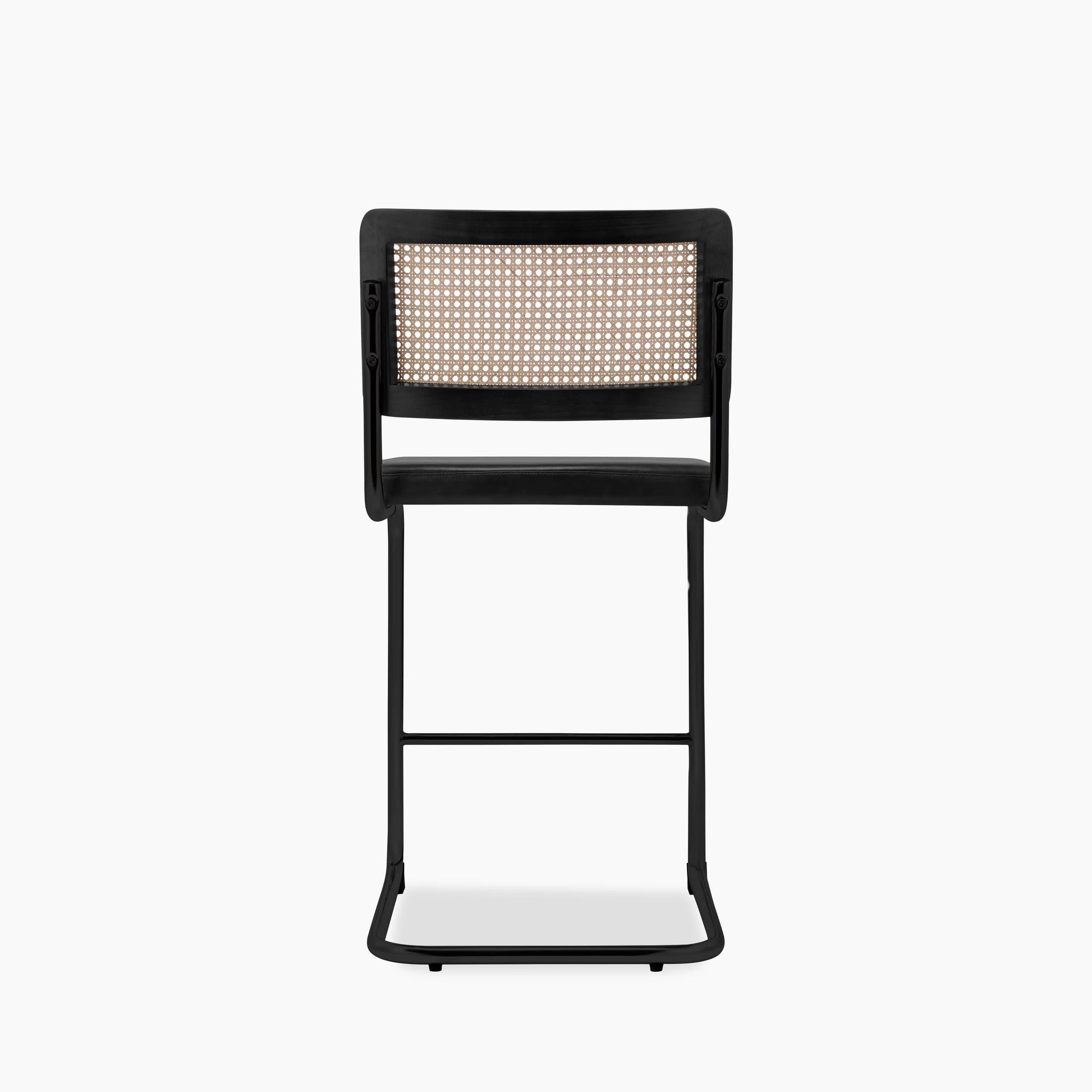 Inspired by Marcel Breuer's Cesca Chair, the Kenton Range is instantly recognisable for its Bauhaus roots. With an S-shaped framework and blend of modernist materials including smooth vintage black faux leather seat and black metal frame with a black-stained wood and cane backrest. This Kenton Cantilever Kitchen Stool is a staple in homes for its beautifully simple design. Considered one of the most influential designs of the 20th century, this kitchen stool has a timeless appeal you've just got to have in your kitchen.