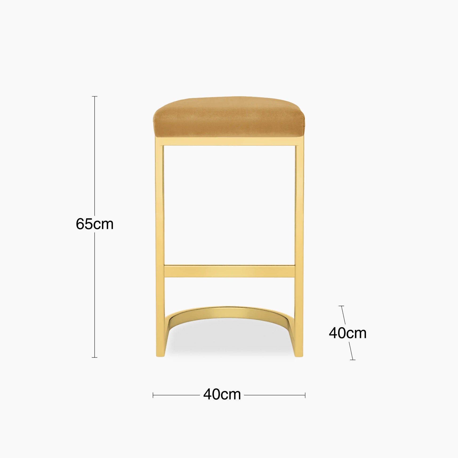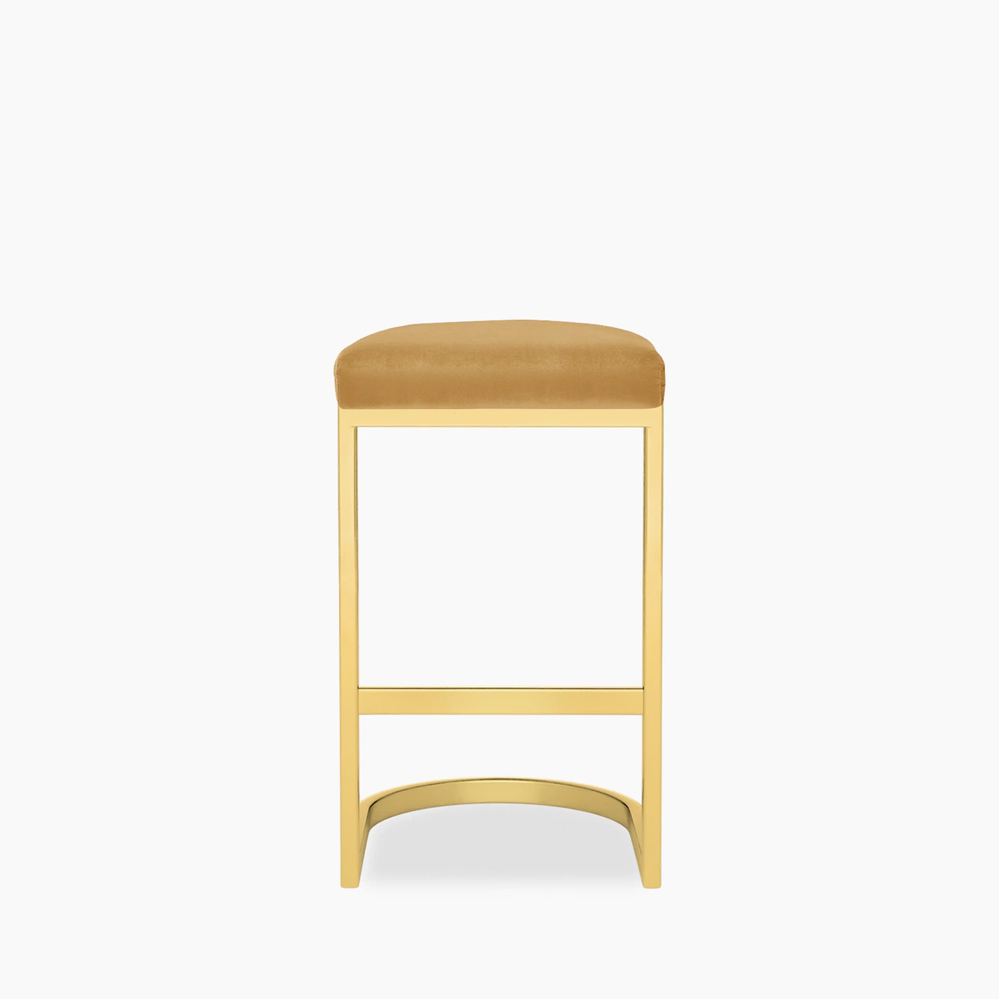 The Matteo metal kitchen stool in mustard yellow velvet brings luxury furniture into your home. The thick brushed metal base of the stool is in a curved design with built-in footrest, perfect for perching at the breakfast island. The Matteo range features a padded seat and curved backrest. The result is a contemporary style that adds luxe design without compromising on comfort.
