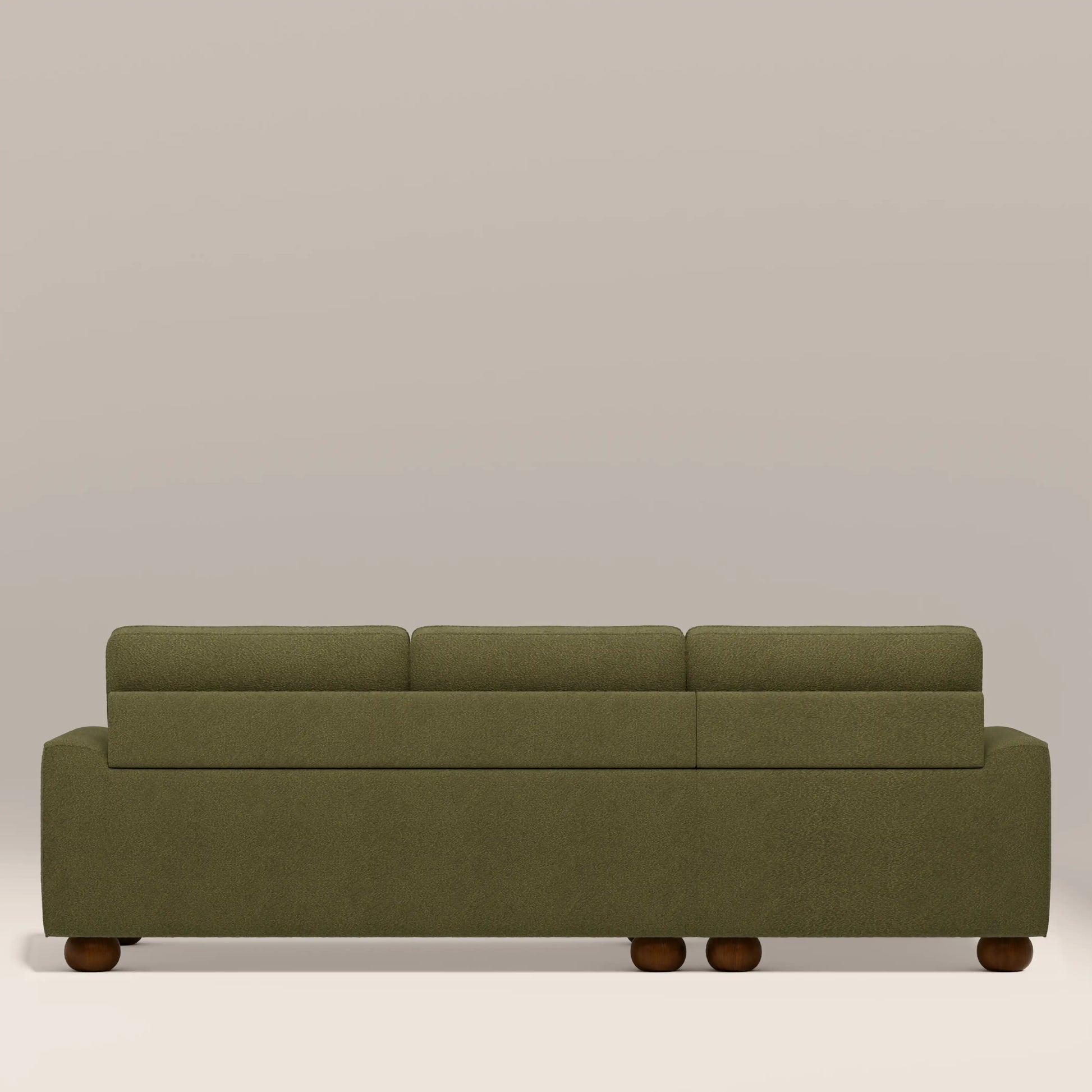 Designed for the style-savvy, the Nola Left Hand Chaise Sofa marries contemporary form with classic influence. Upholstered in soft and tactile boucle, this modern green sofa features curved soft lines, deep seat cushions, and a warm, refined silhouette. Its timeless appeal and elevated comfort make it a standout piece for interiors that value both aesthetics and sustainability. A chaise boucle sofa that speaks to modern living with enduring style.