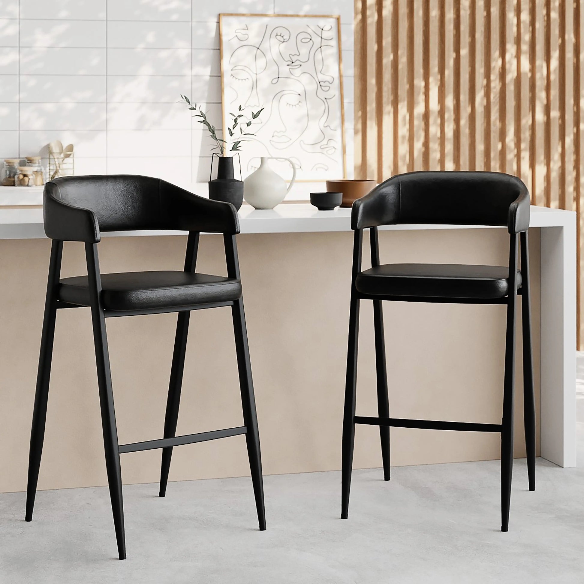 Presley Bar Stool | Vintage Black Faux Leather & Black