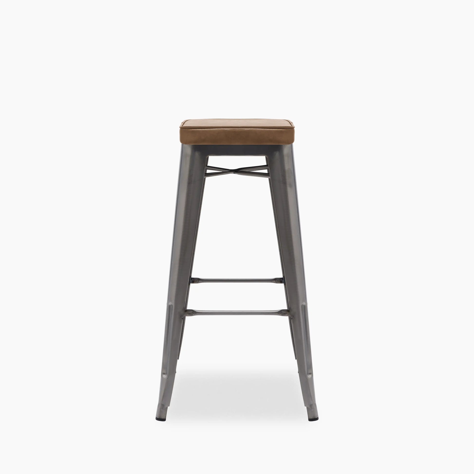 Tolix Style Stackable Bar Stool | Tan Faux Leather & Gunmetal