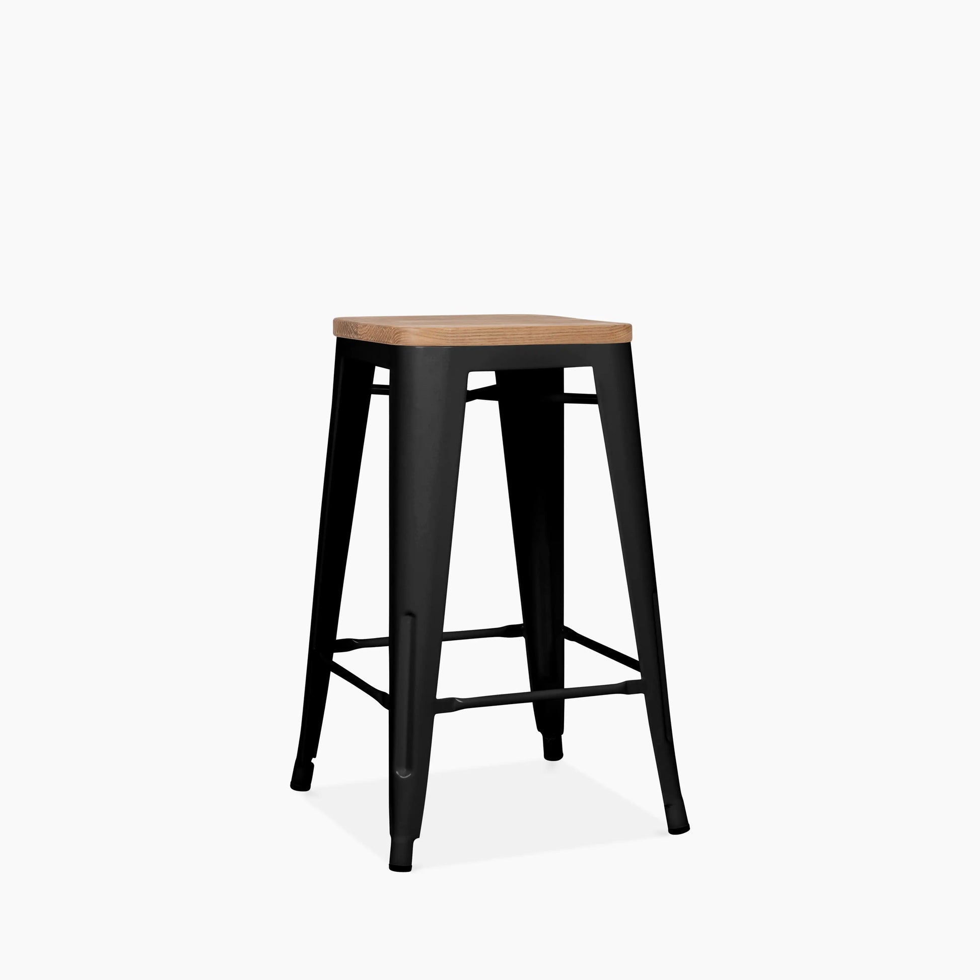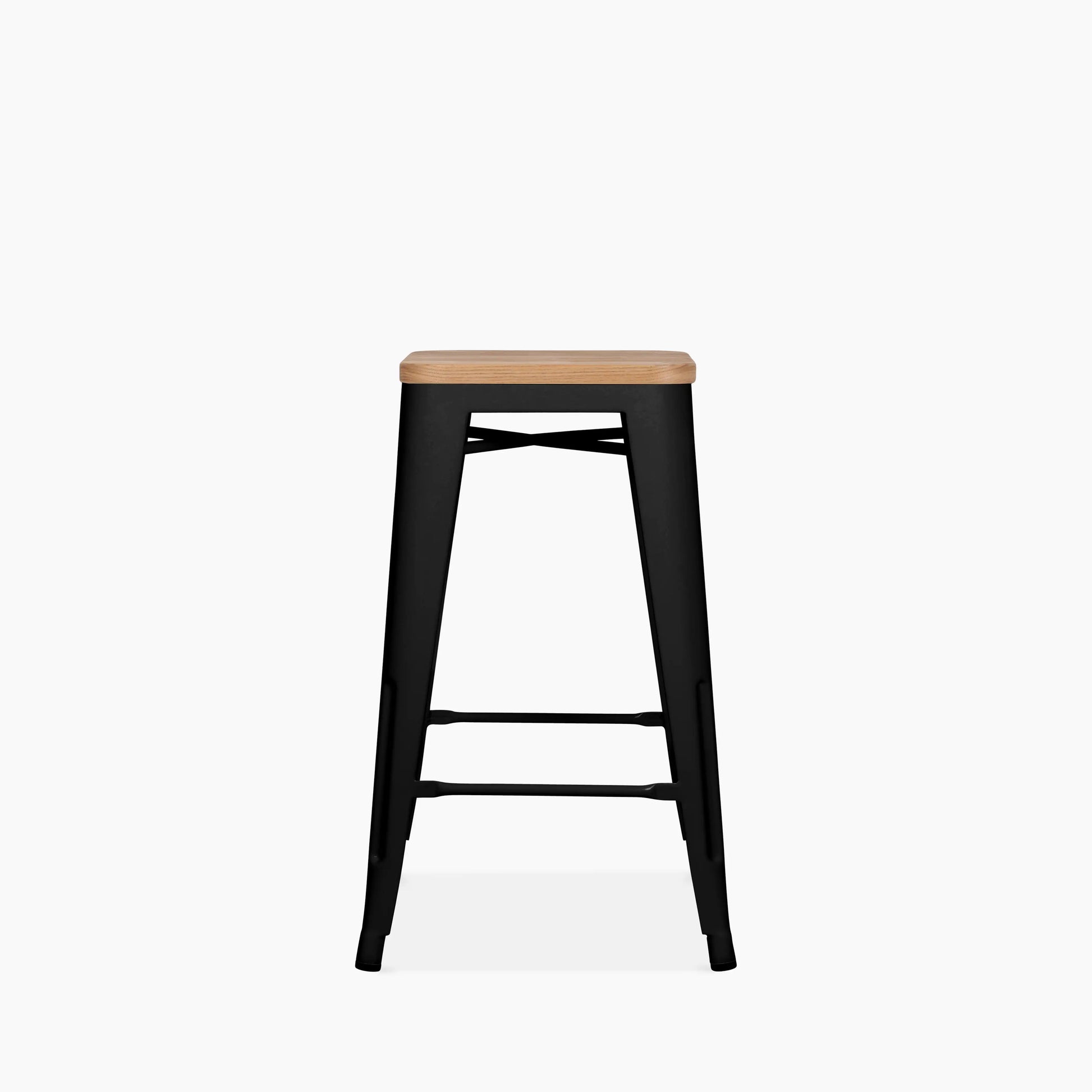 Tolix Style Stackable Kitchen Stool | Oak & Black