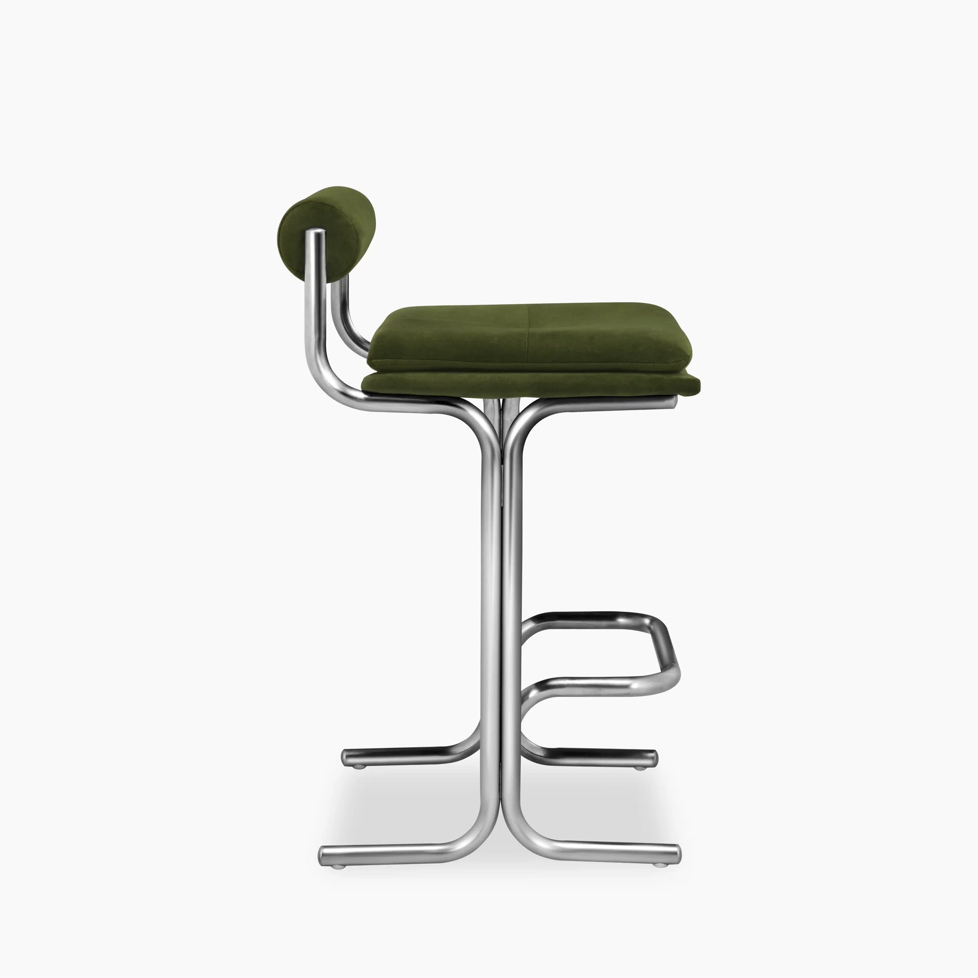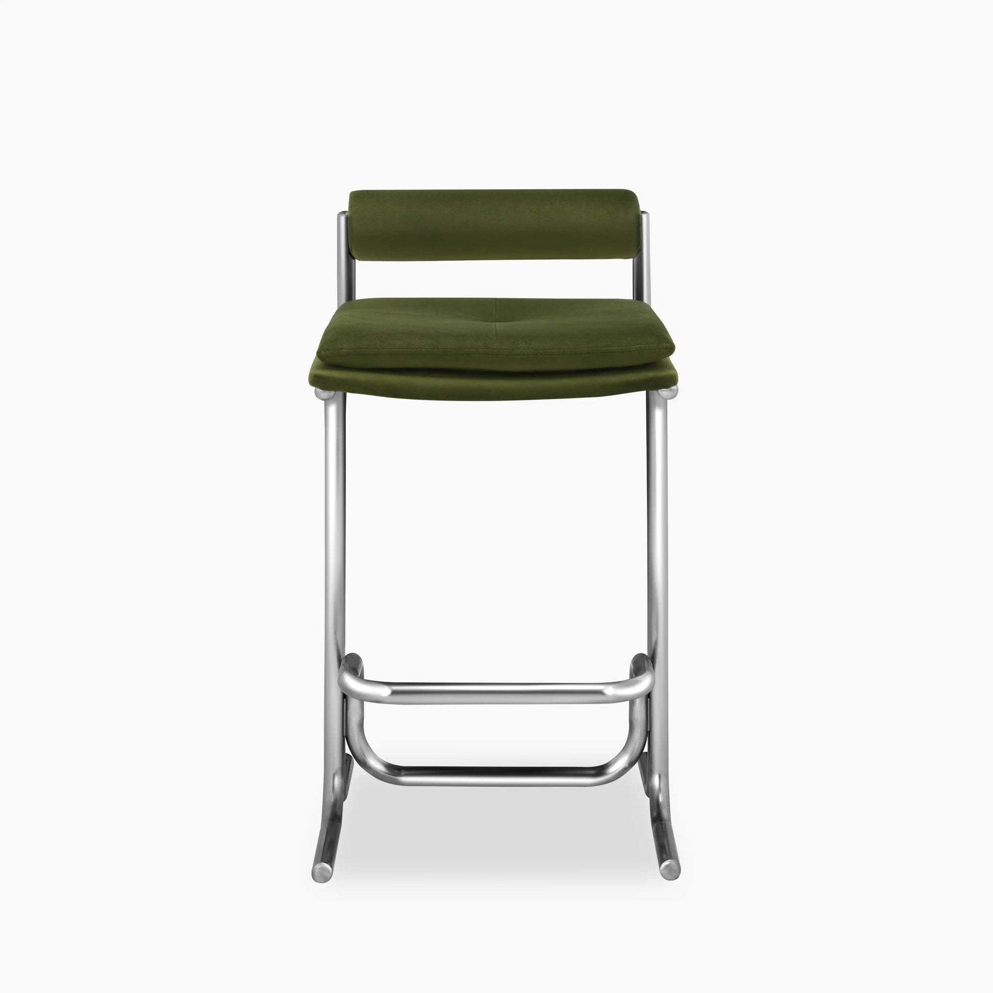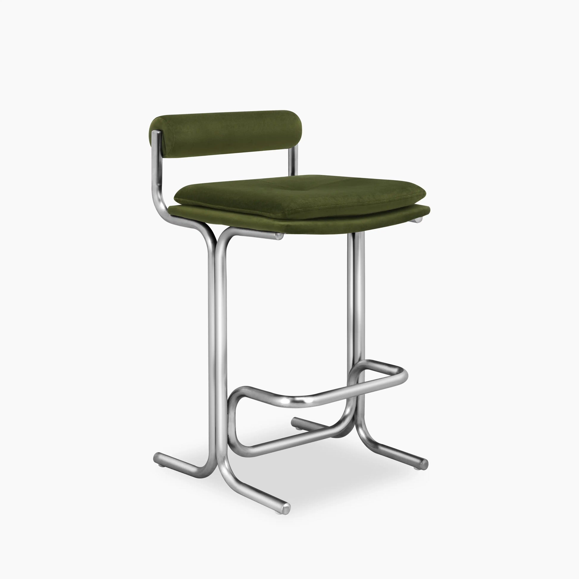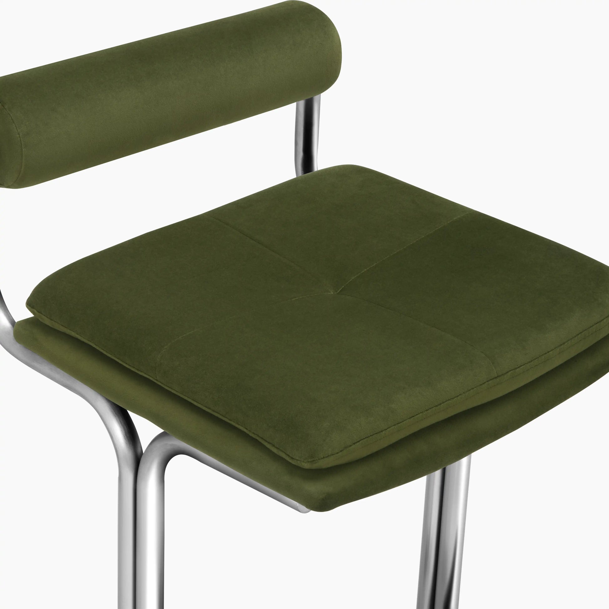 Wilbur Kitchen Stool | Olive Green Sustainable Velvet & Chrome