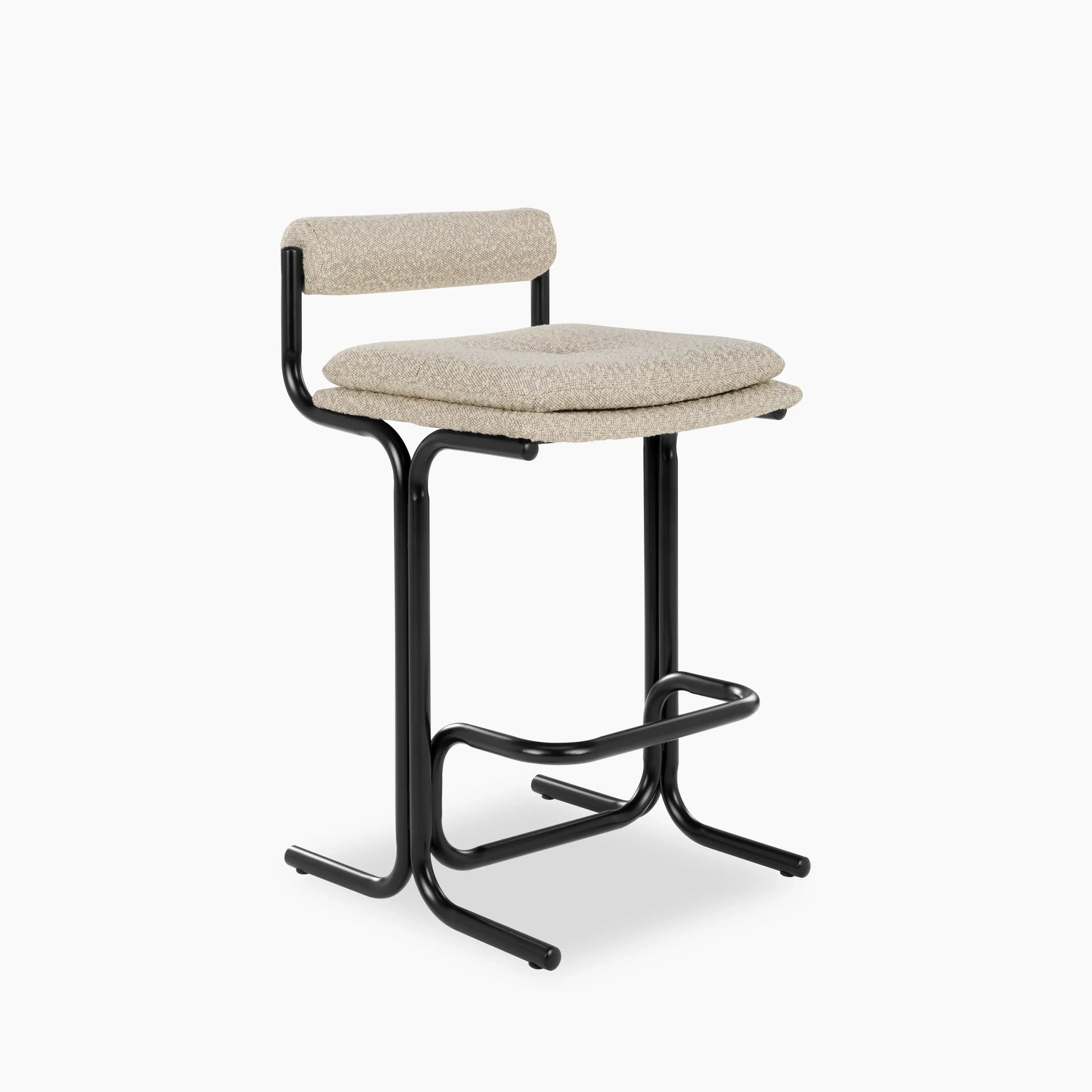 Wilbur Kitchen Stool | Speckled Stone Sustainable Boucle & Black