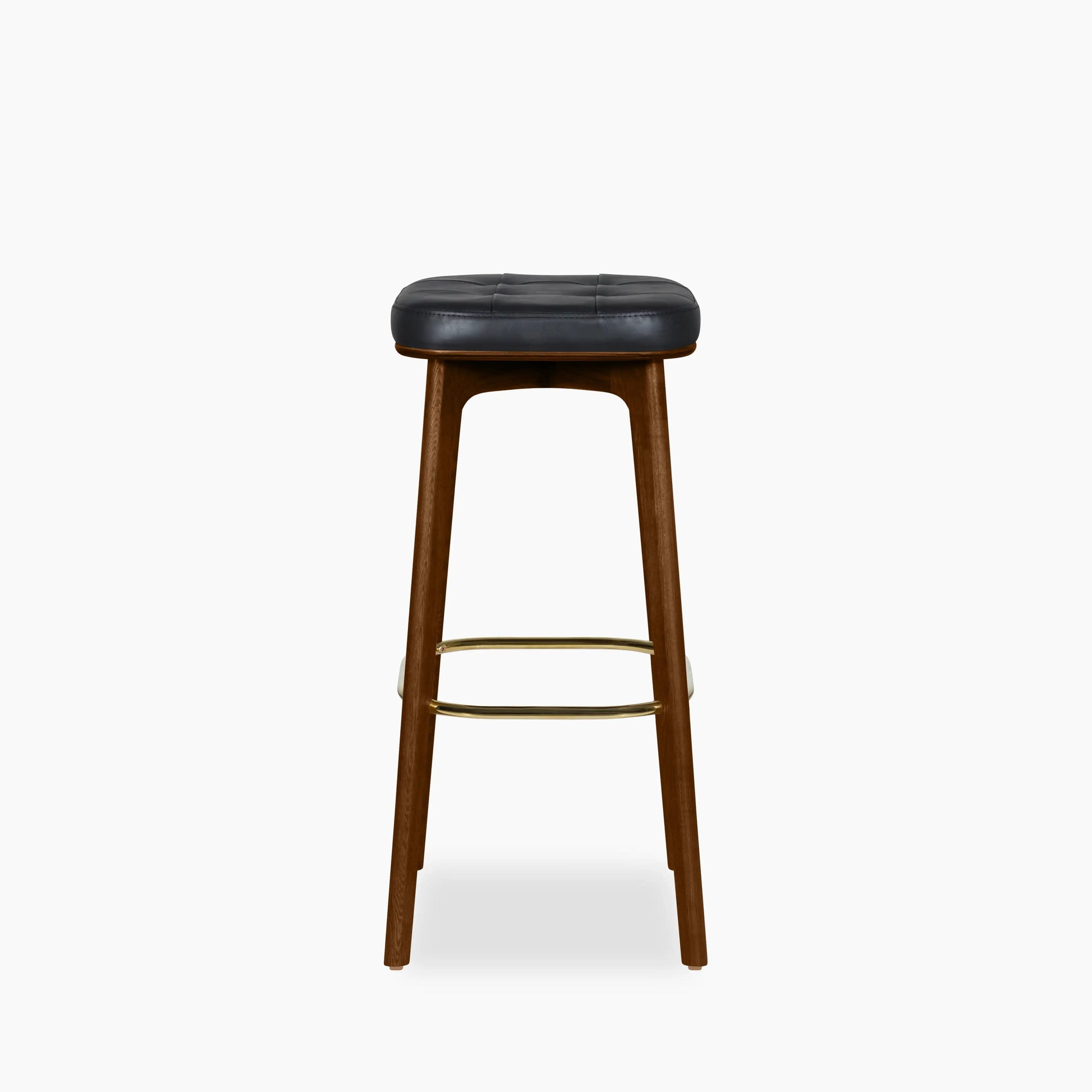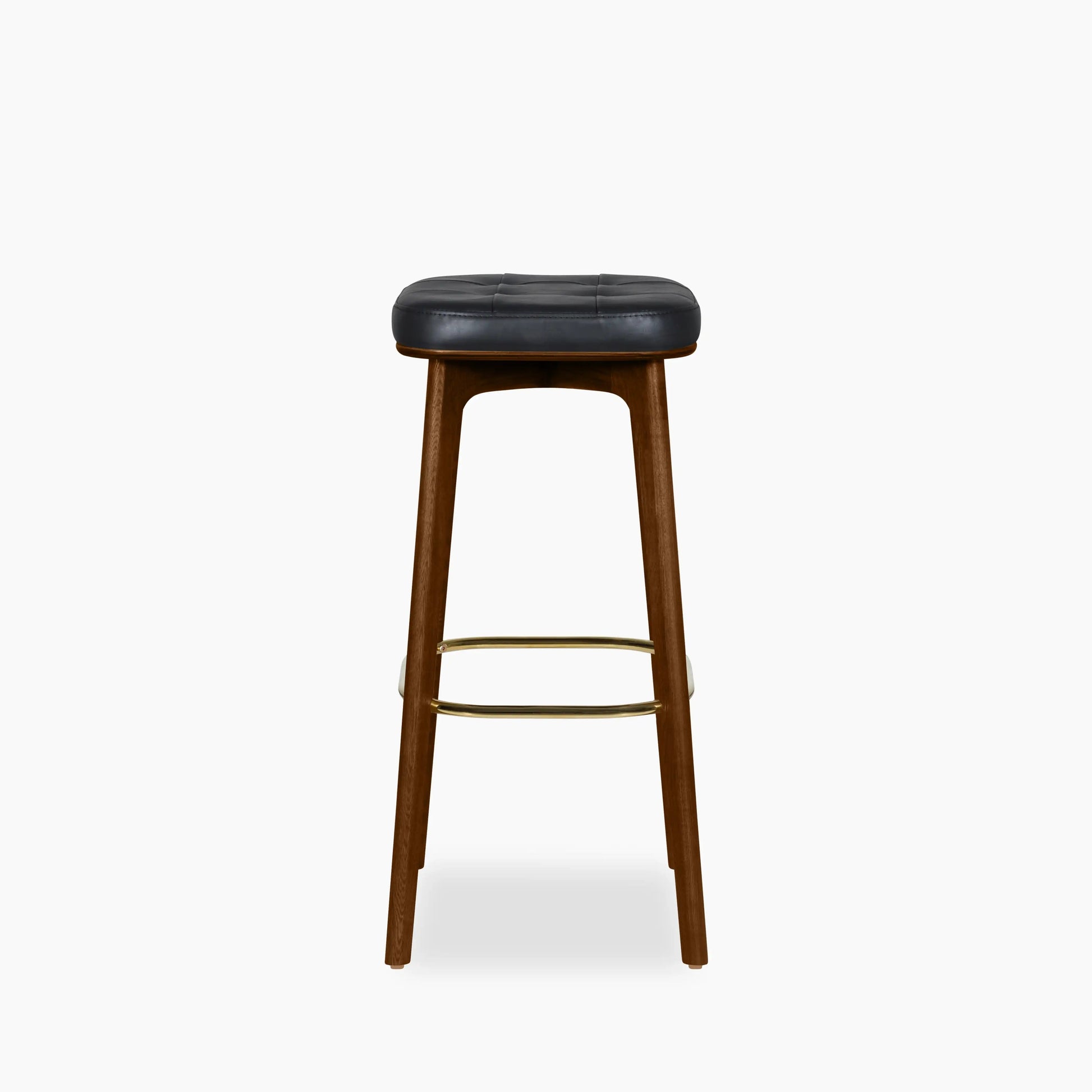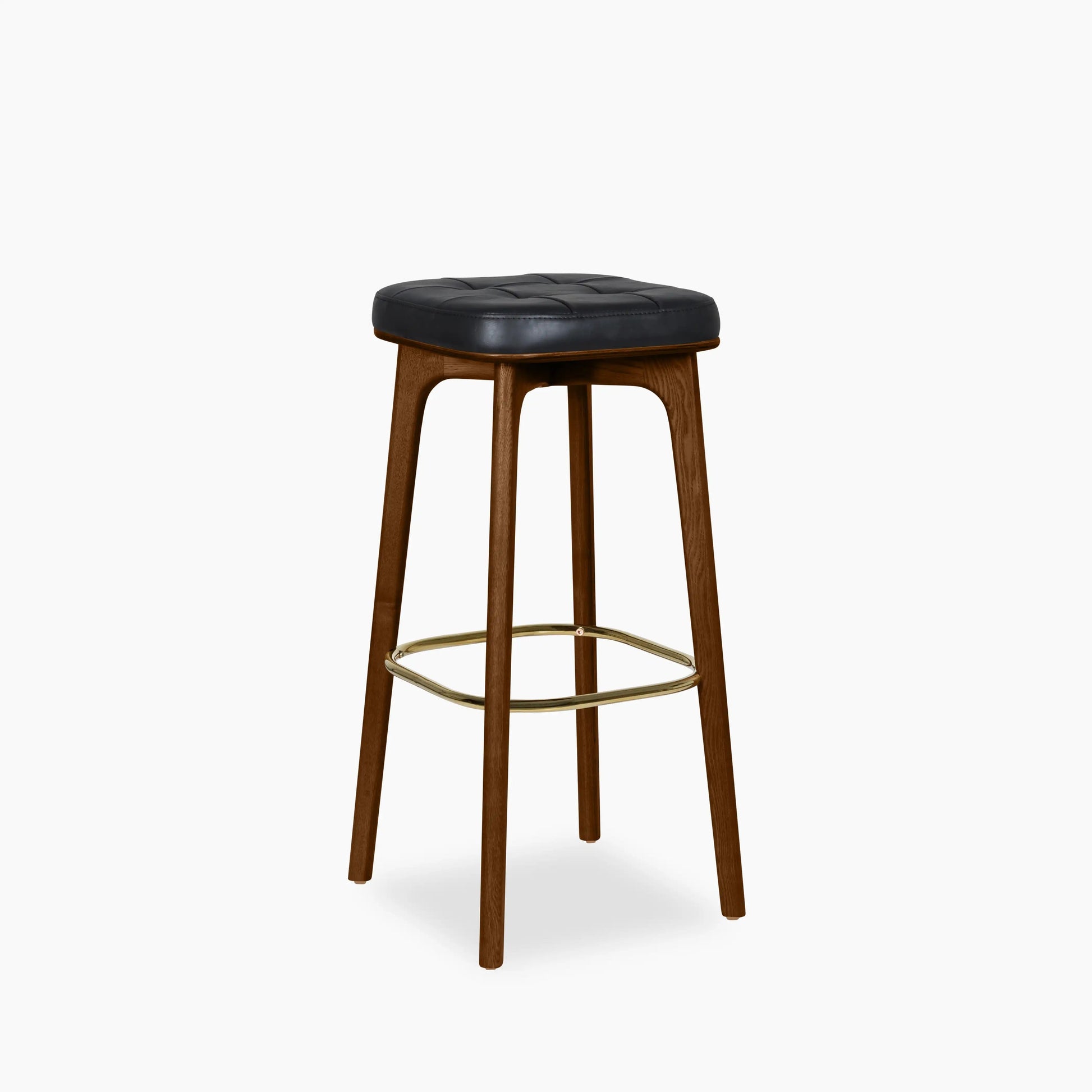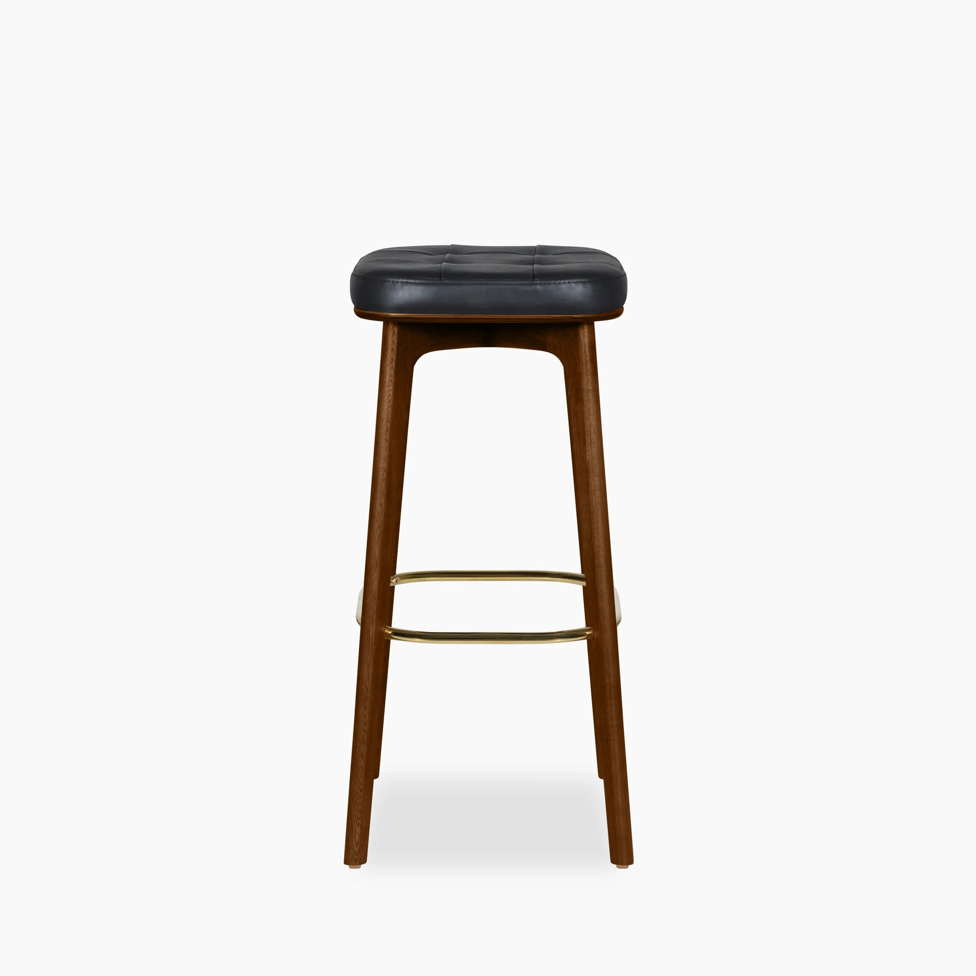 Winchester Bar Stool | Vintage Black Faux Leather & Walnut