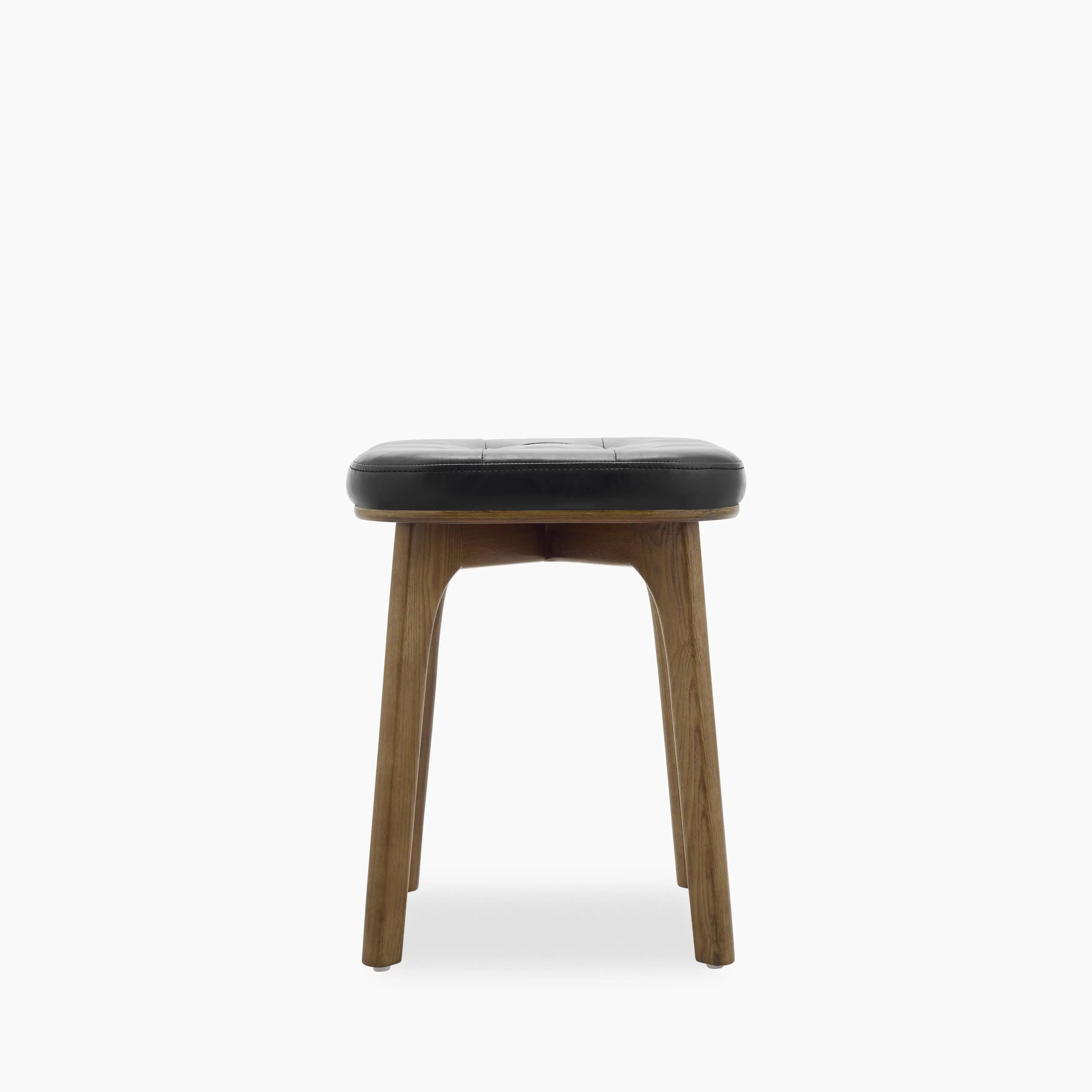Winchester Low Stool | Vintage Black Faux Leather & Walnut